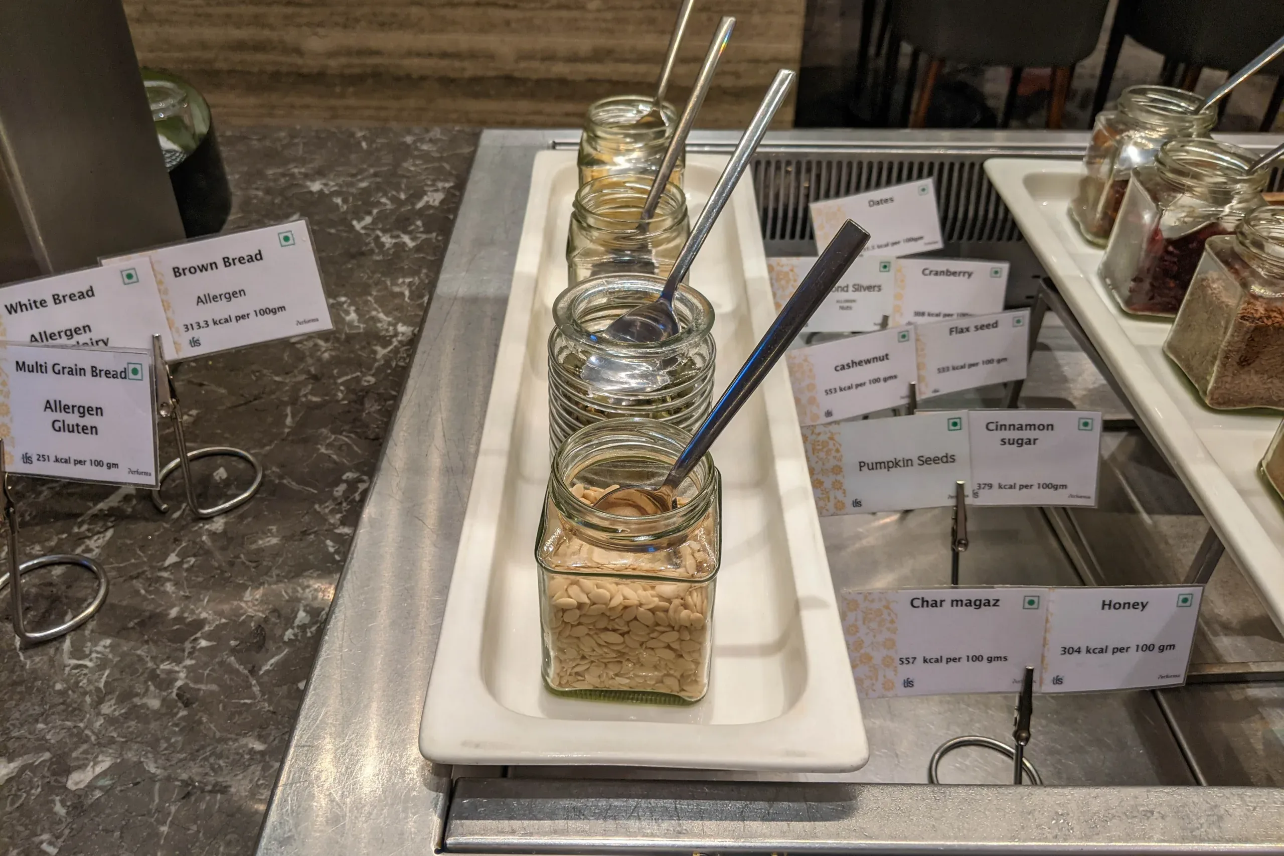 We had the privilege of accessing the lounge because we were flying in Vistara business class to Mauritius, a booking we made using Aeroplan points.