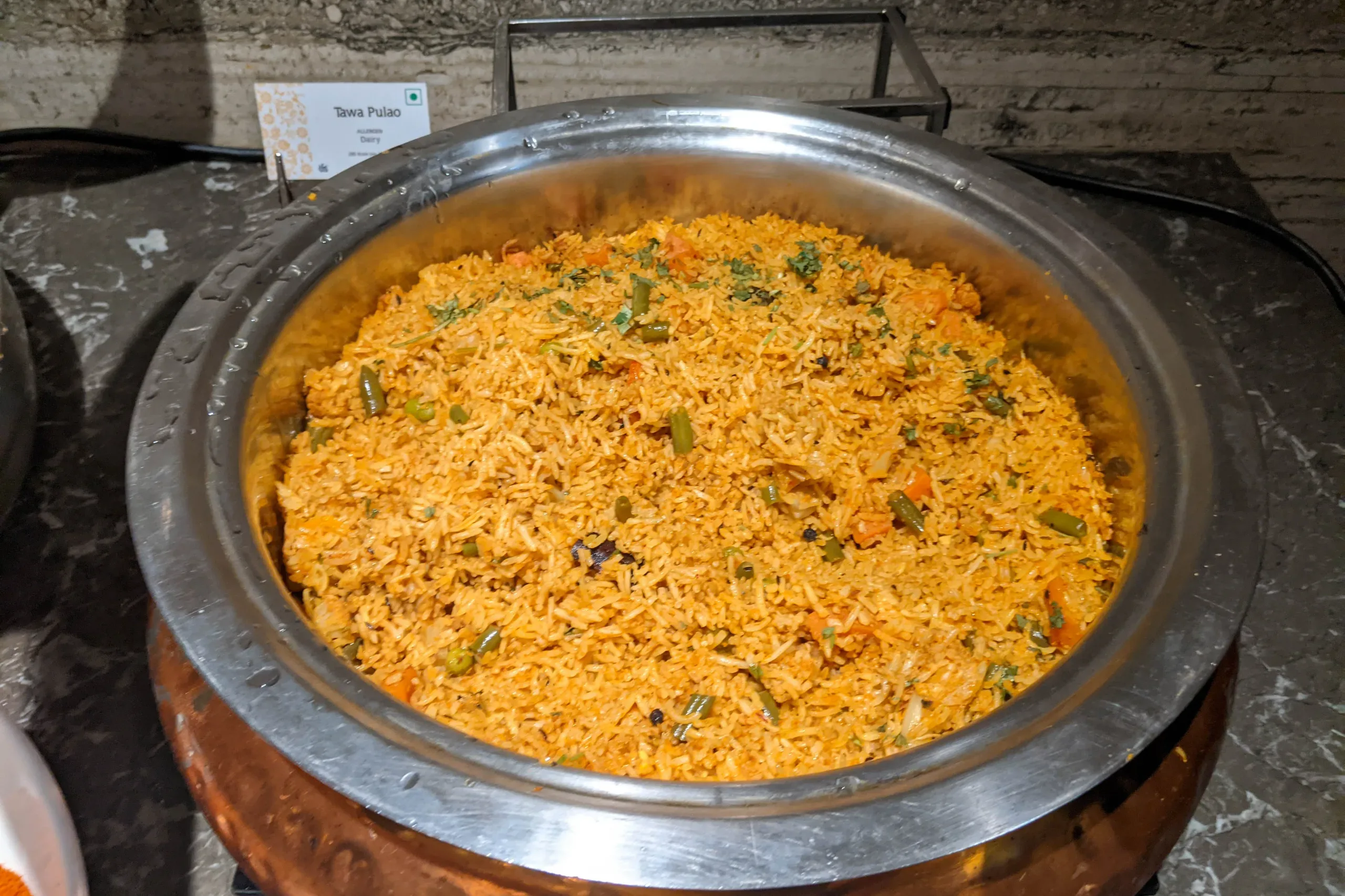 The variety of hot dishes and the focus on Indian cuisine also stood out to me, and added a nice touch to the overall lounge experience.