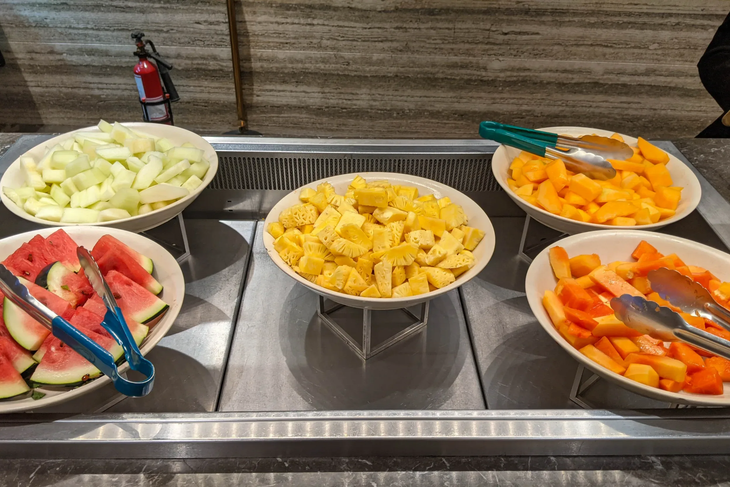Situated at the rear of the lounge, there’s a generously-sized buffet area with an array of hot and cold food options.