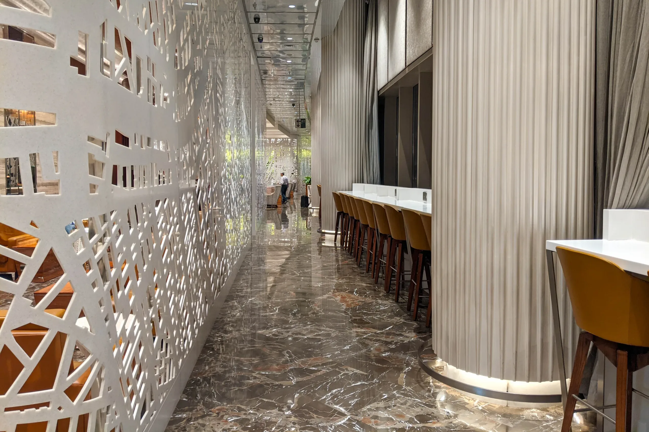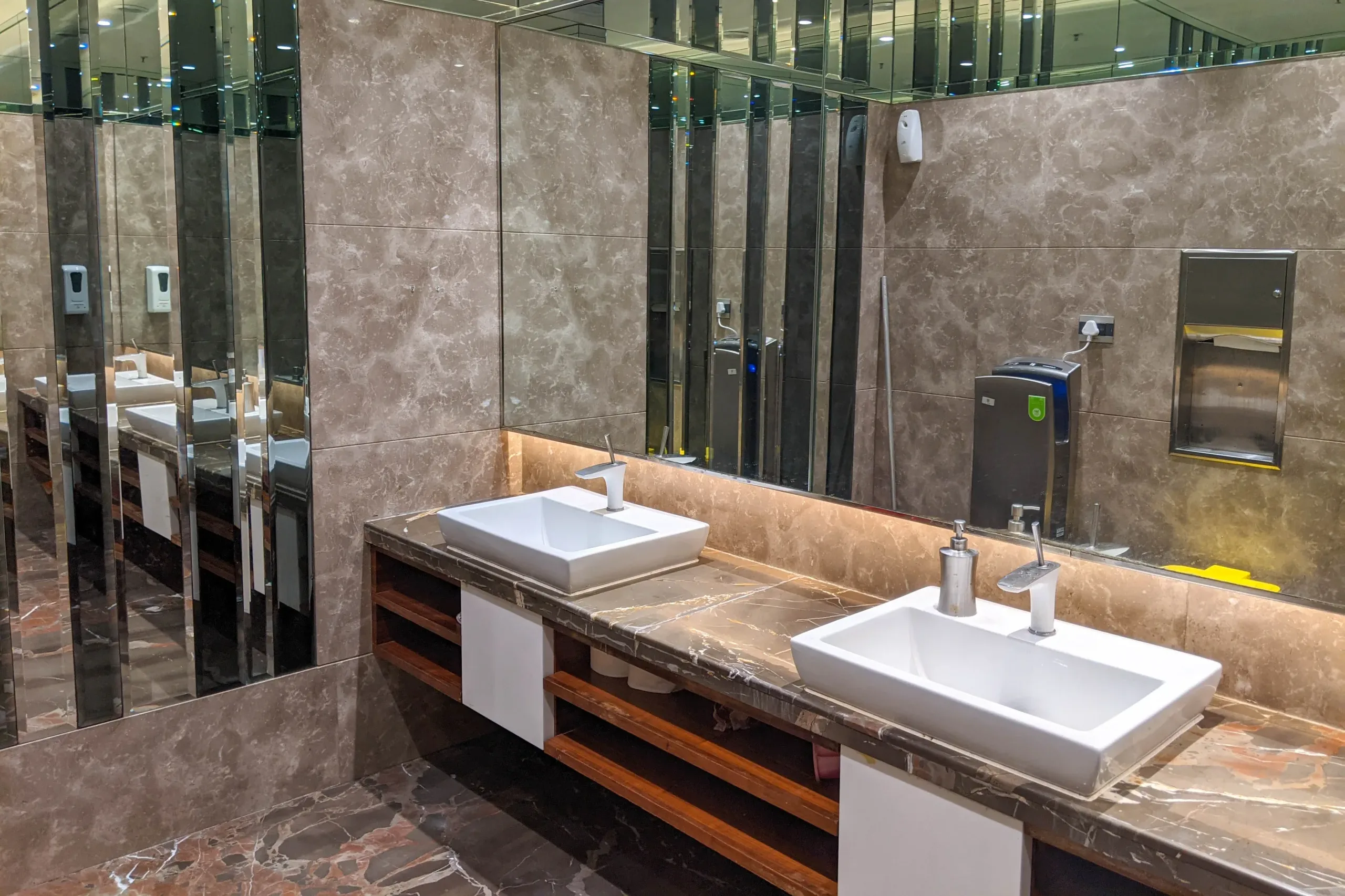 Tucked into the corner of the lounge are the restrooms, which are well-kept. They’re also quite spacious, boasting a polished décor that aligns with the lounge’s overall atmosphere.