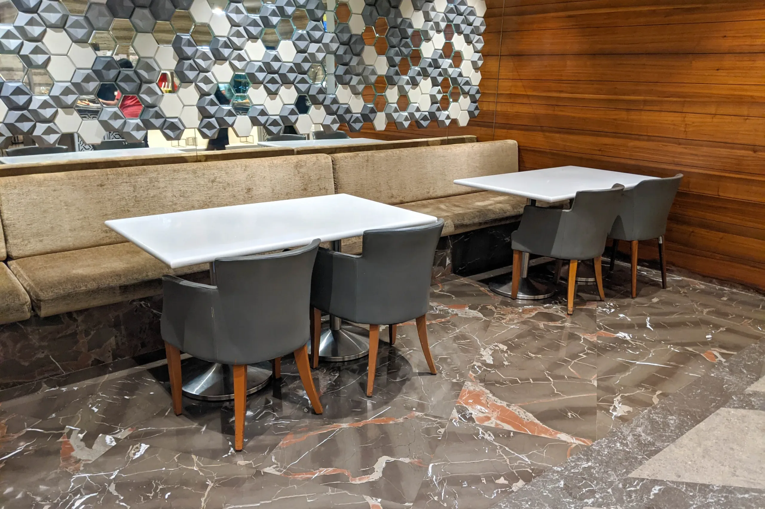 Moving further down, the lounge has clusters of dining tables, accommodating both two and four-person groups.