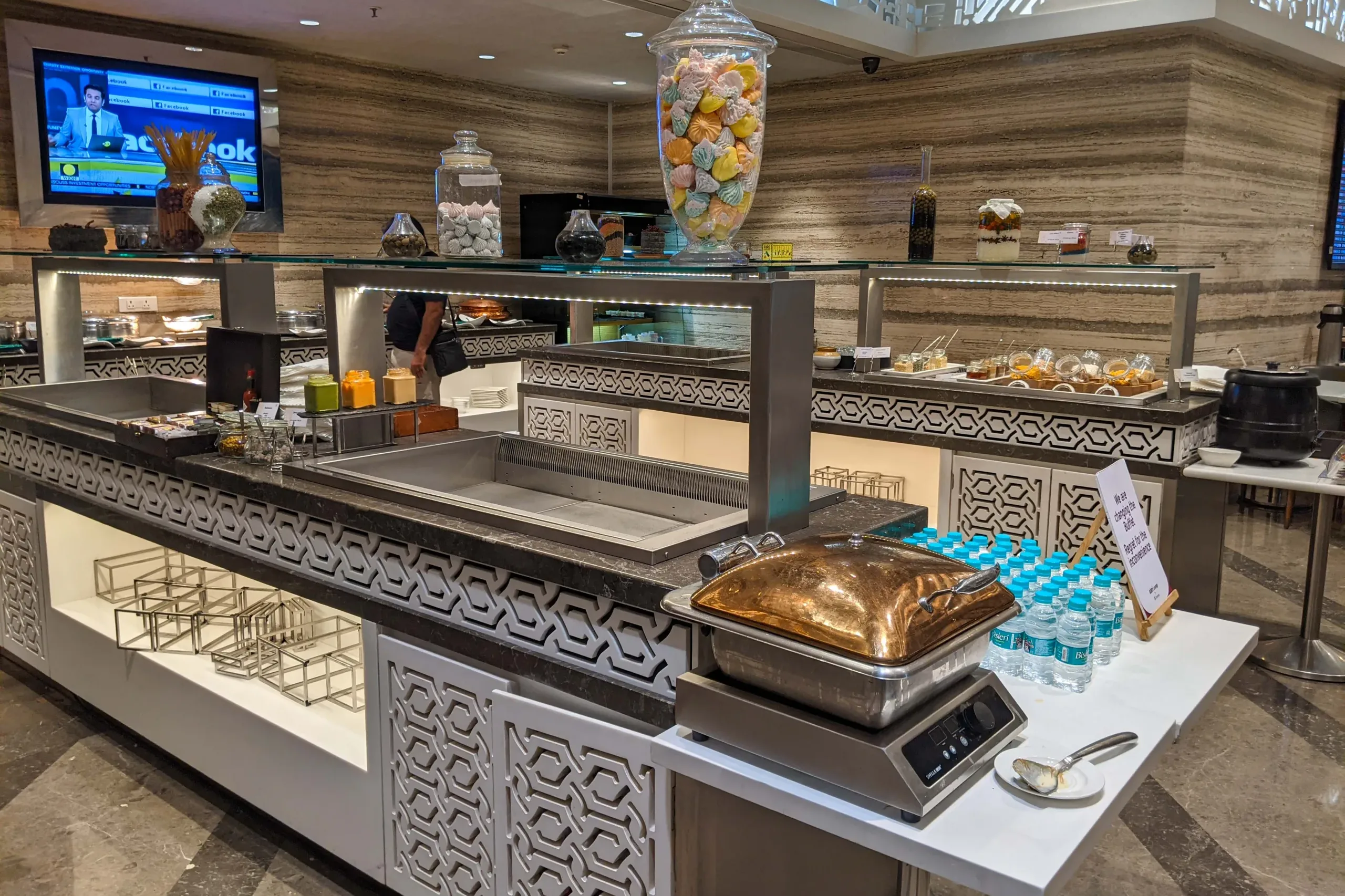 Situated at the rear of the lounge, there’s a generously-sized buffet area with an array of hot and cold food options.