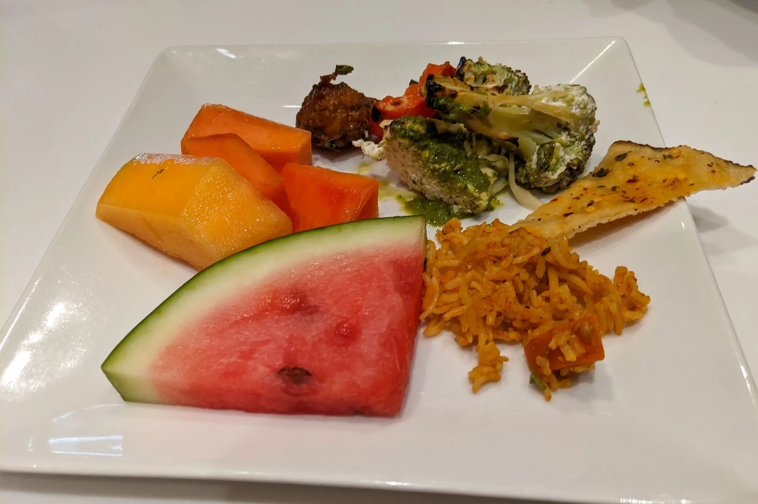 The variety of hot dishes and the focus on Indian cuisine also stood out to me, and added a nice touch to the overall lounge experience.