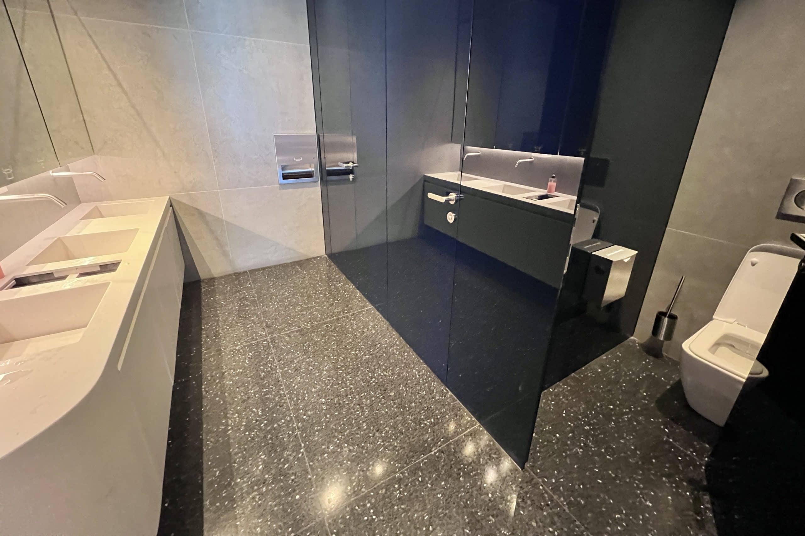 Restrooms are located inside the lounge, and were clean and modern.