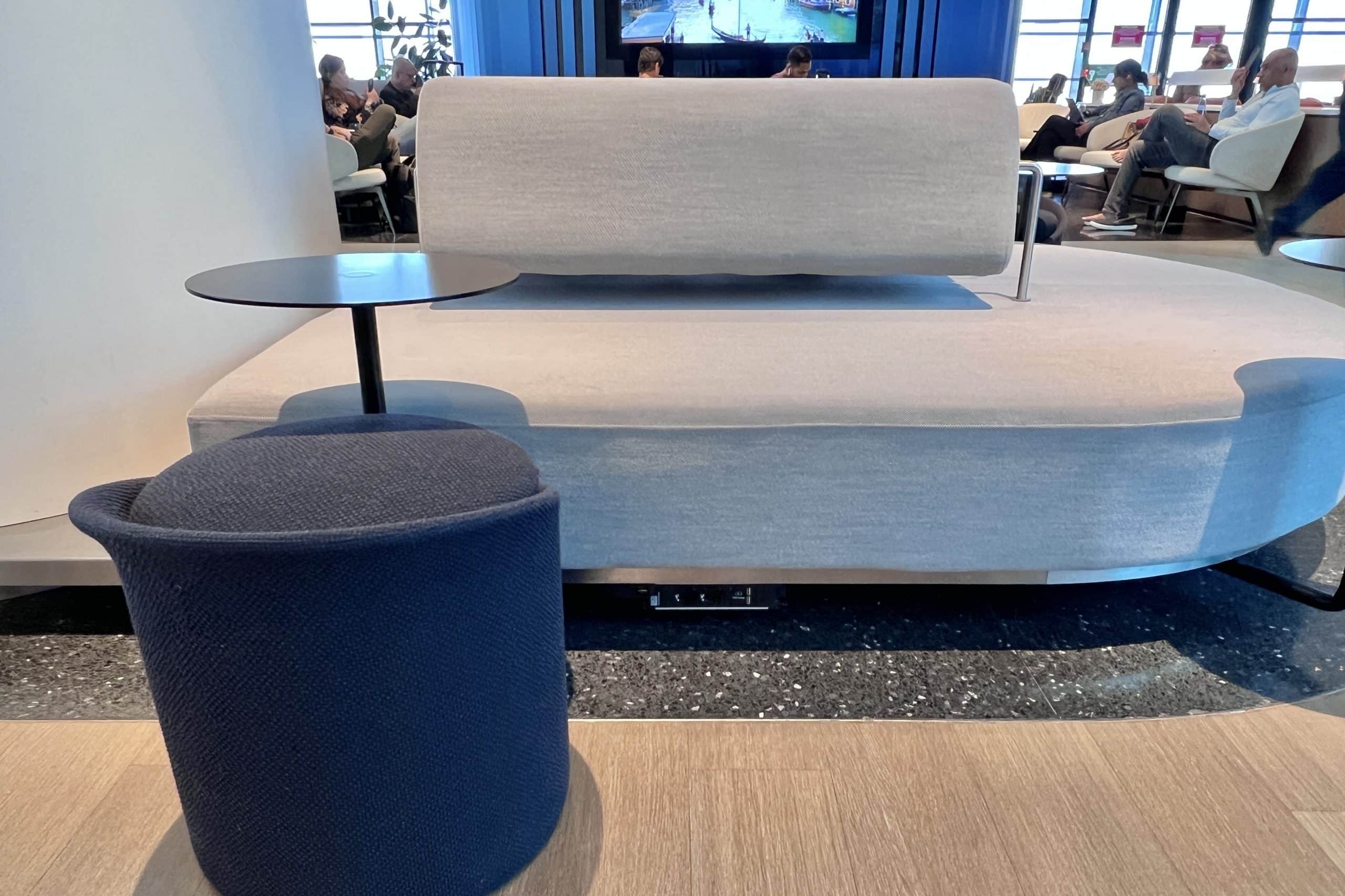 No matter where you choose to sit, there’s always a table, light, and outlet plug with USB ports close by. The outlets are strategically located on the fronts of tables, under them, on the walls, and under the seats.