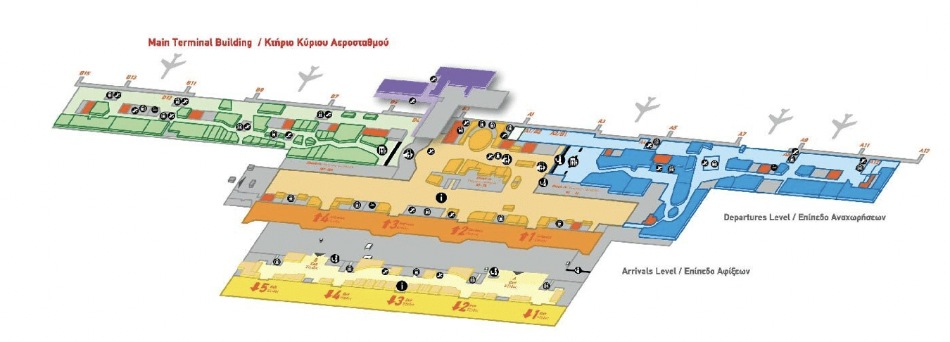 The new Aegean Business Lounge Athens (Non-Schengen) is located on the departures level, post-security, in the international departures area. In the below map, it’s the part of the airport that’s shaded in blue.