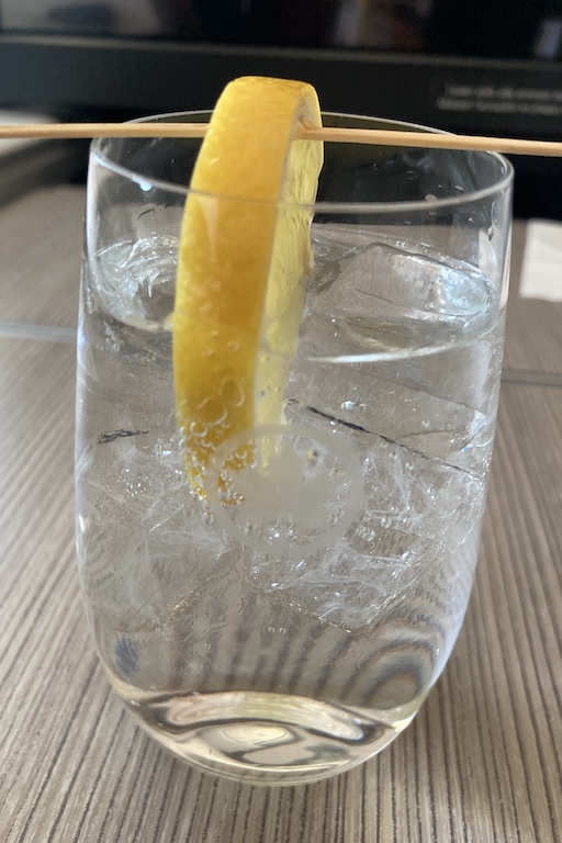 I was thrilled to receive my drinks in proper glassware. My meal also came with a cloth napkin and stainless steel flatware. Suffice to say, food and drink service is pretty much back to normal, a welcome treat after a long 18 months without air travel.