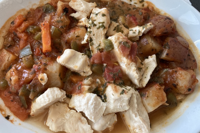 There were different main courses served on each flight. For the eastbound leg, I ordered the chicken dish, with a Brazilian-style sauce and mixed cooked vegetables. I enjoyed it, but I’ve had comparable meals in economy.