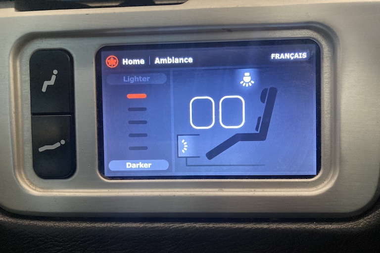 There’s a dedicated control panel for ambiance and comfort right beside the seat. From here, you can control the lighting, including the window dimmer, overhead lights, and footwell light.