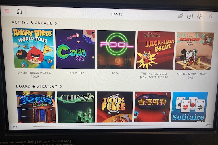 Entertainment options are pretty standard, with a range of movies and TV shows including some new releases. There are also foreign-language films for a variety of audiences.