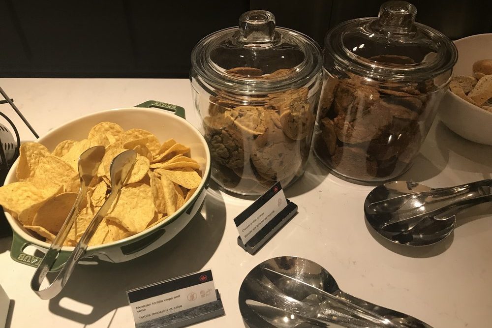 Since there wasn’t going to be a meal served on my economy class flight, I decided to eat some dinner in the lounge. The food spread was quite predictable – you can count on Air Canada having chicken noodle soup, a salad bar, chips and salsa, and those delightful cookies in pretty much all of their lounges.