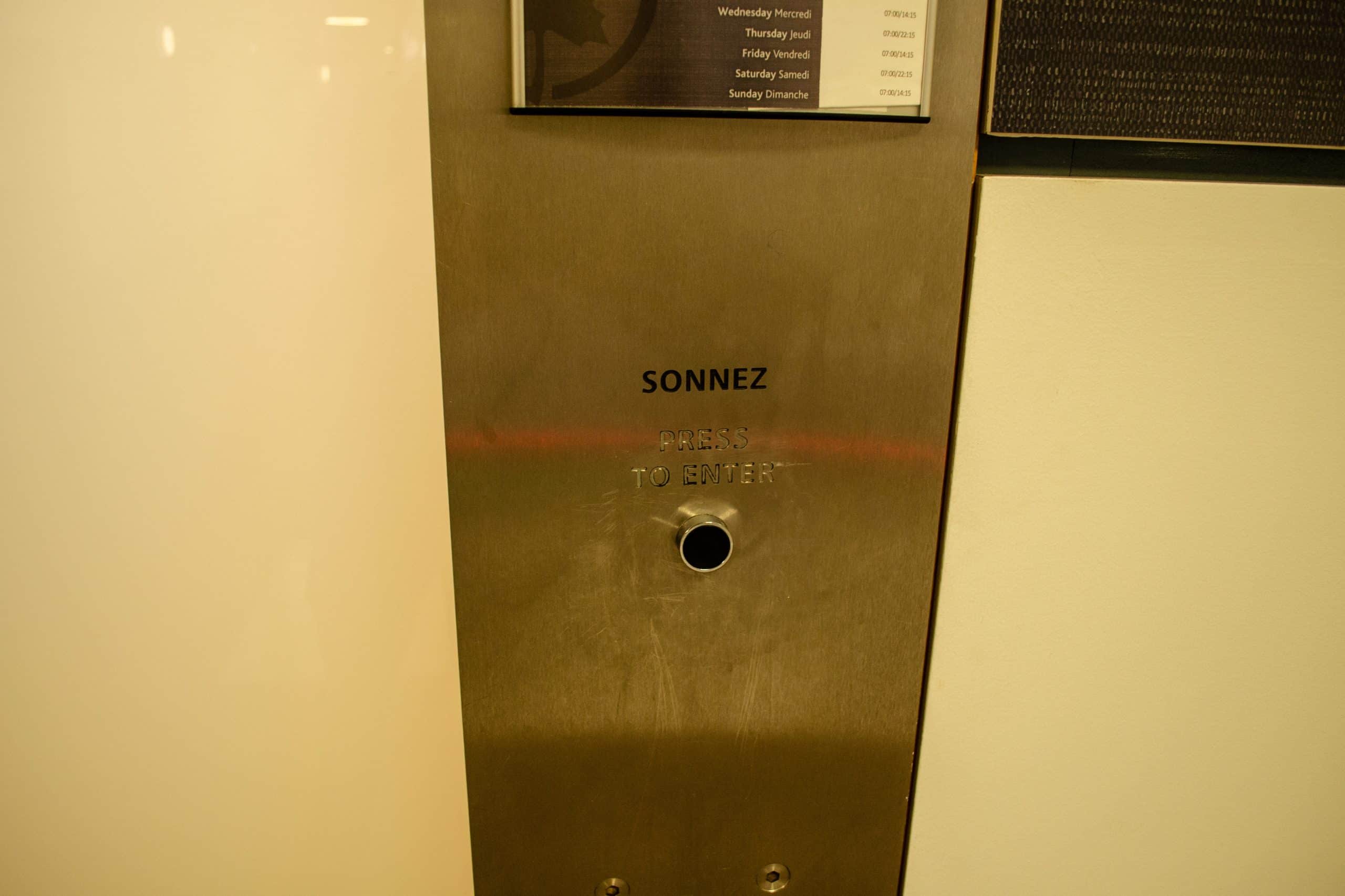 Once you’ve arrived in the satellite building, head down a set of escalators and then ring a bell to be summoned into the lounge. Finding this Maple Leaf Lounge, and then being granted access, is a bit of a mission, but it might just make you feel like you’re entering a secret spy lair.