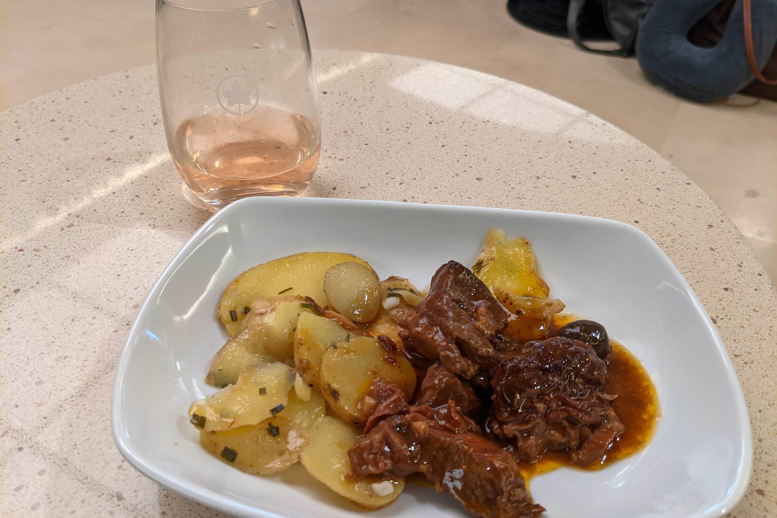 My flight was set to depart in the early afternoon, and I didn’t want to spoil my appetite too much in the lounge. However, the hot food items were enticing, and I decided to help myself to a small meal alongside a glass or two of rosé.