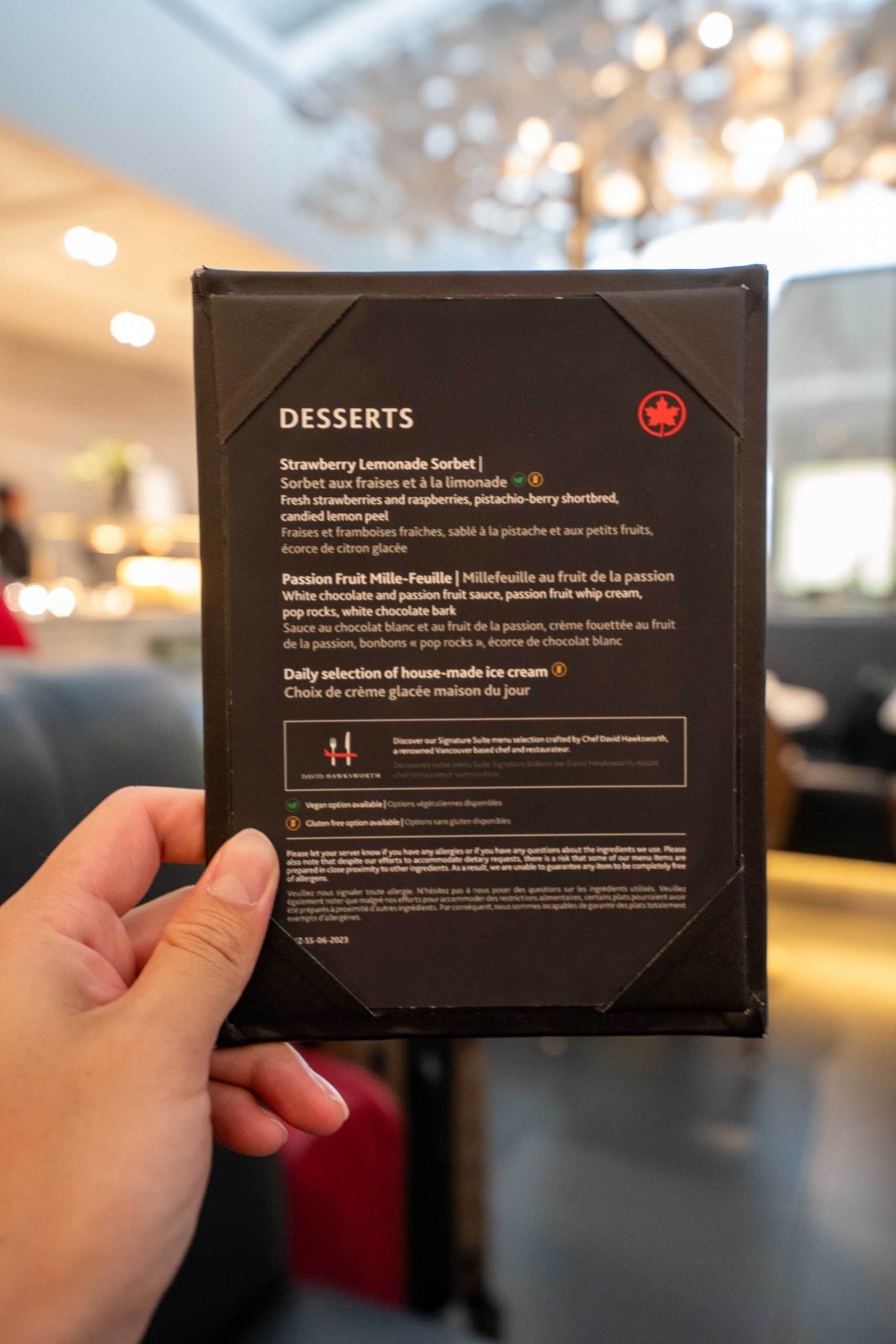 The Signature Suite offers a complimentary à la carte dining experience through a full-service restaurant-style menu, curated by renowned chef David Hawksworth of Hawksworth Restaurant in Vancouver.