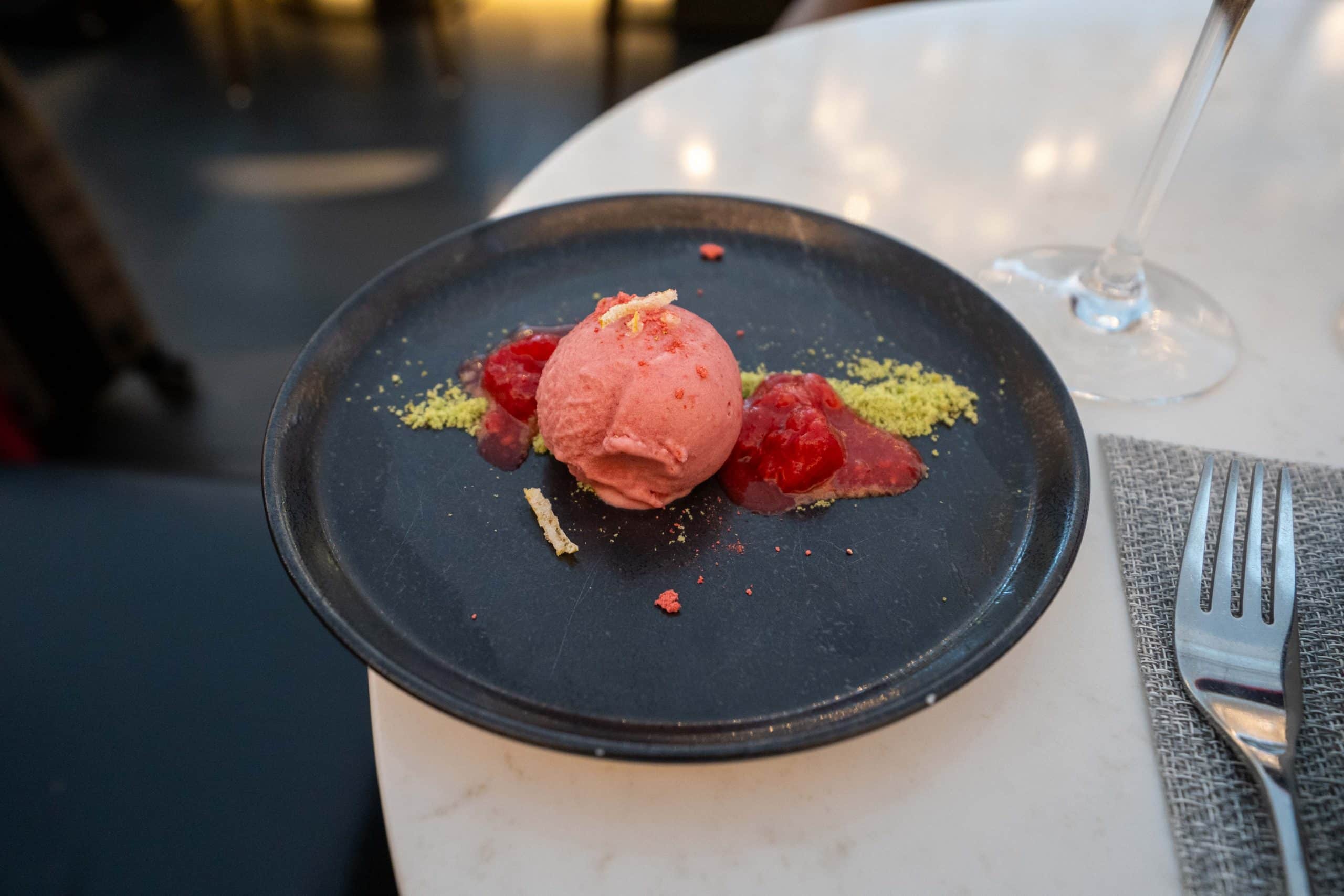 To wrap up the meal, I ordered the strawberry lemonade sorbet, which finished things off on a delightfully sweet note.
