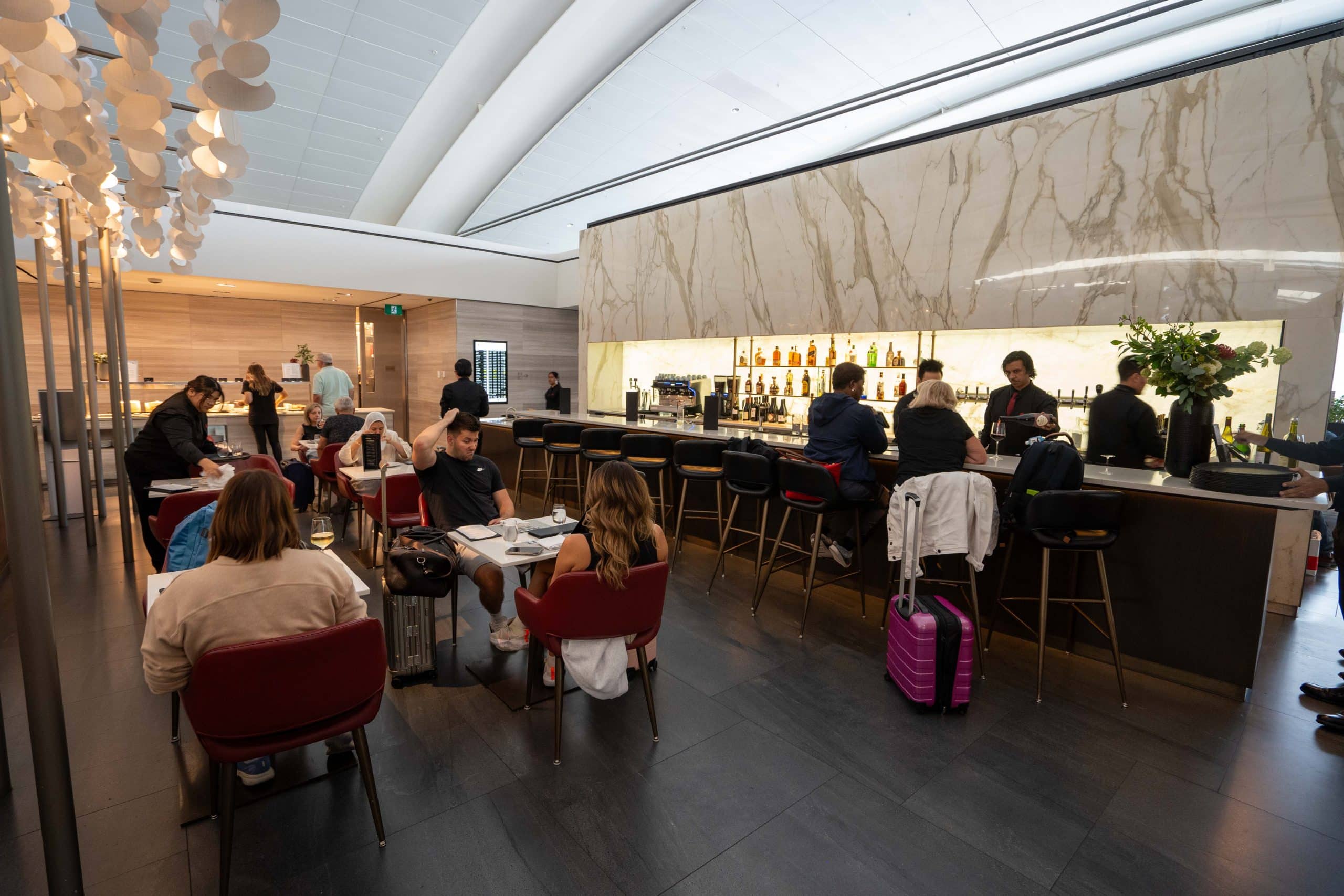 Then, there’s a spacious dining area, featuring the lounge’s stunning signature marble bar.