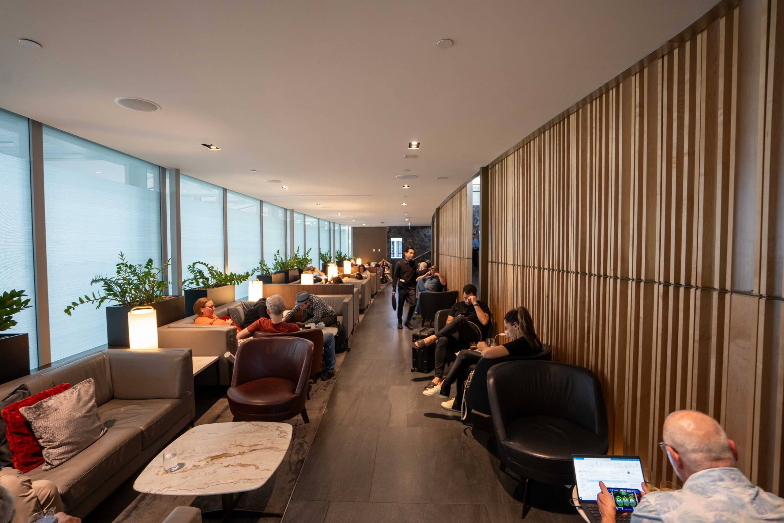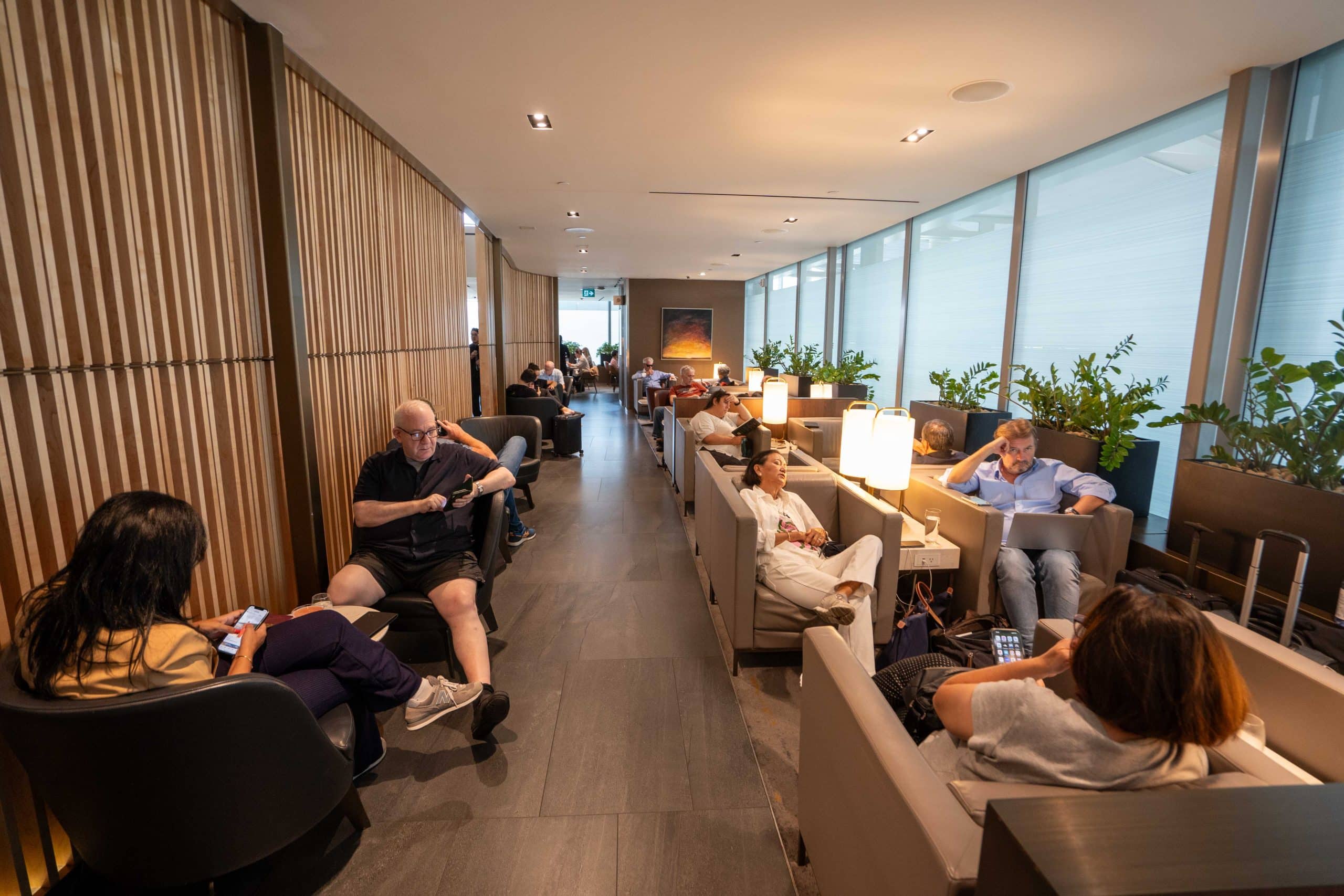Moreover, the lounge is well-connected with a multitude of discreet AC and USB-A power outlets distributed throughout the lounge, including at almost every seat.