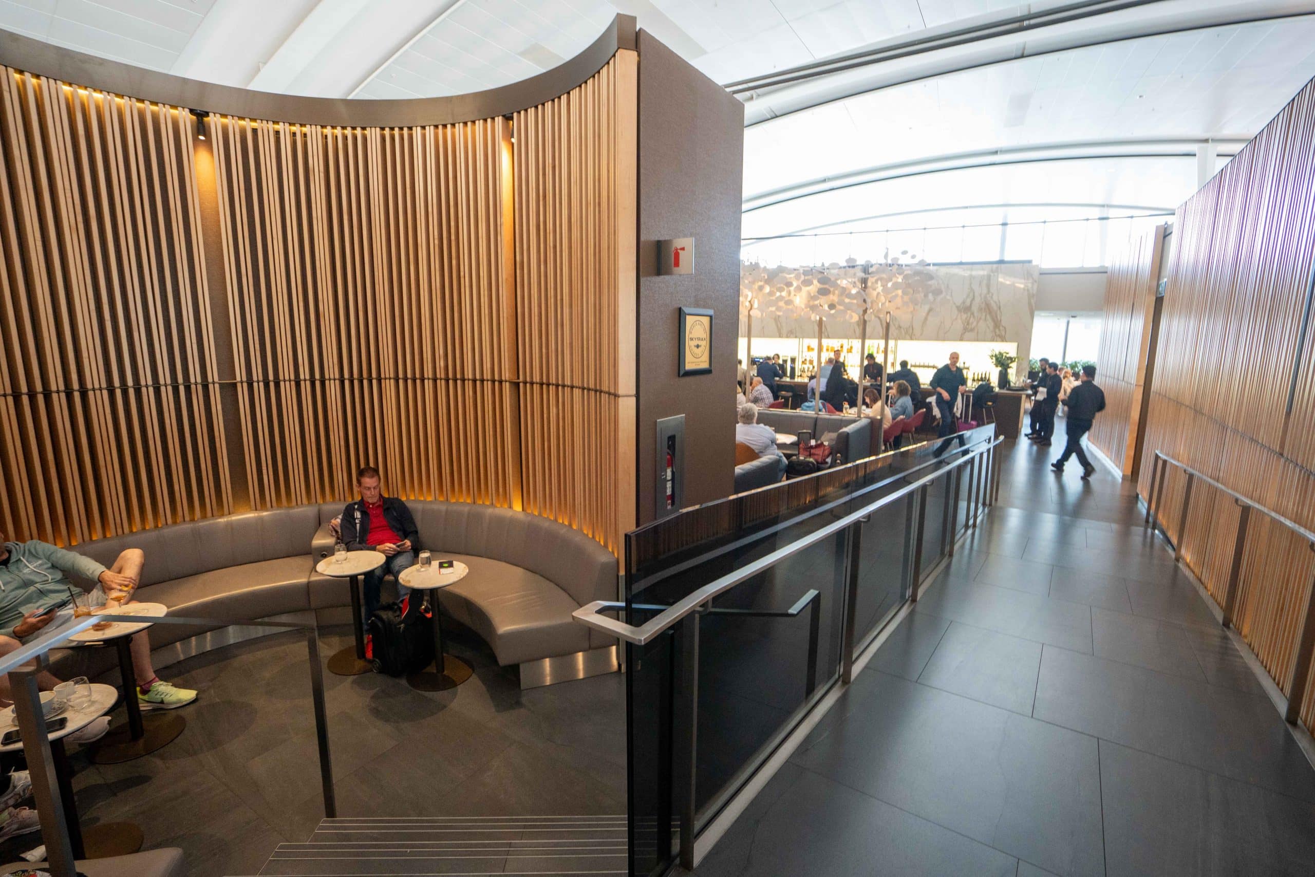 Additionally, access is granted to holders of the exclusive American Express Air Canada Card, which is available by invitation only, who are travelling in any class of service. These cardholders are able to bring in one guest.