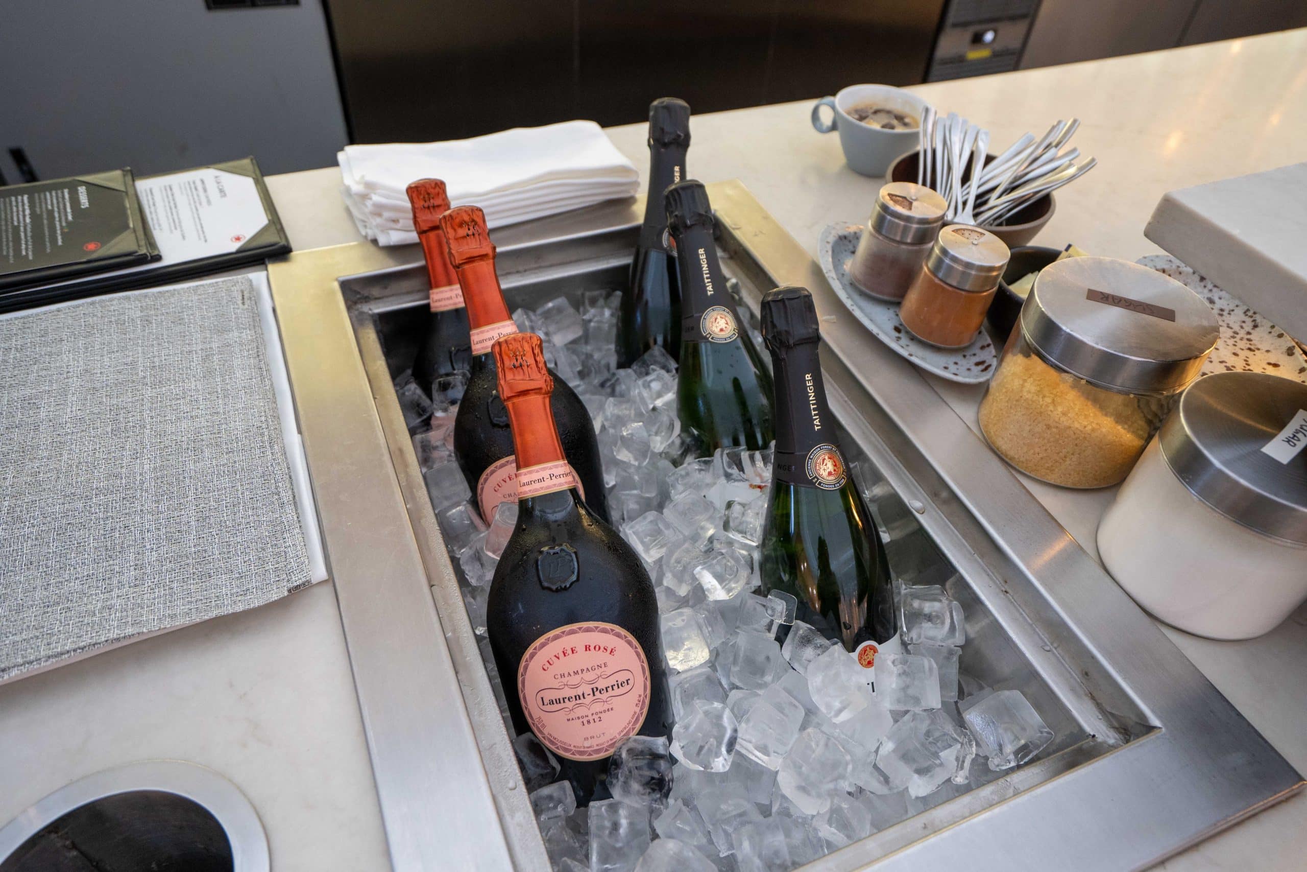 Moreover, an impressive selection of Champagne, wines, and cocktails is available, including two premium Champagnes: Laurent Perrier Rosé and Taittinger Brut.