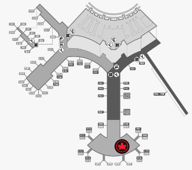 The Air Canada Signature Suite is situated within the international departures area of Toronto Pearson International Airport, next to Gate E77.