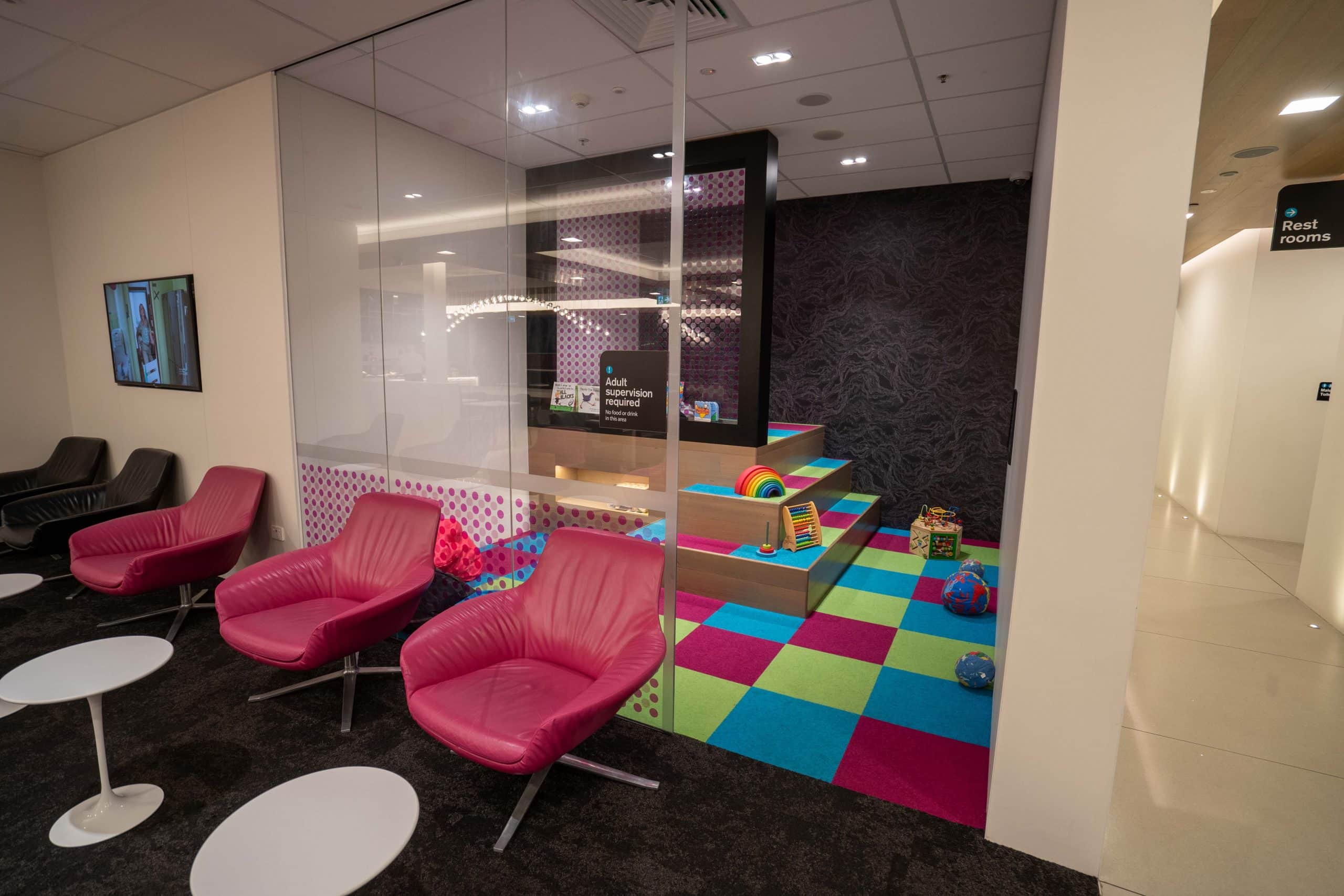 At the far end of the lounge, you’ll find a children’s play area. Next to it, there are a handful of armchairs for adults to use to keep an eye on their kids, without sitting directly inside.