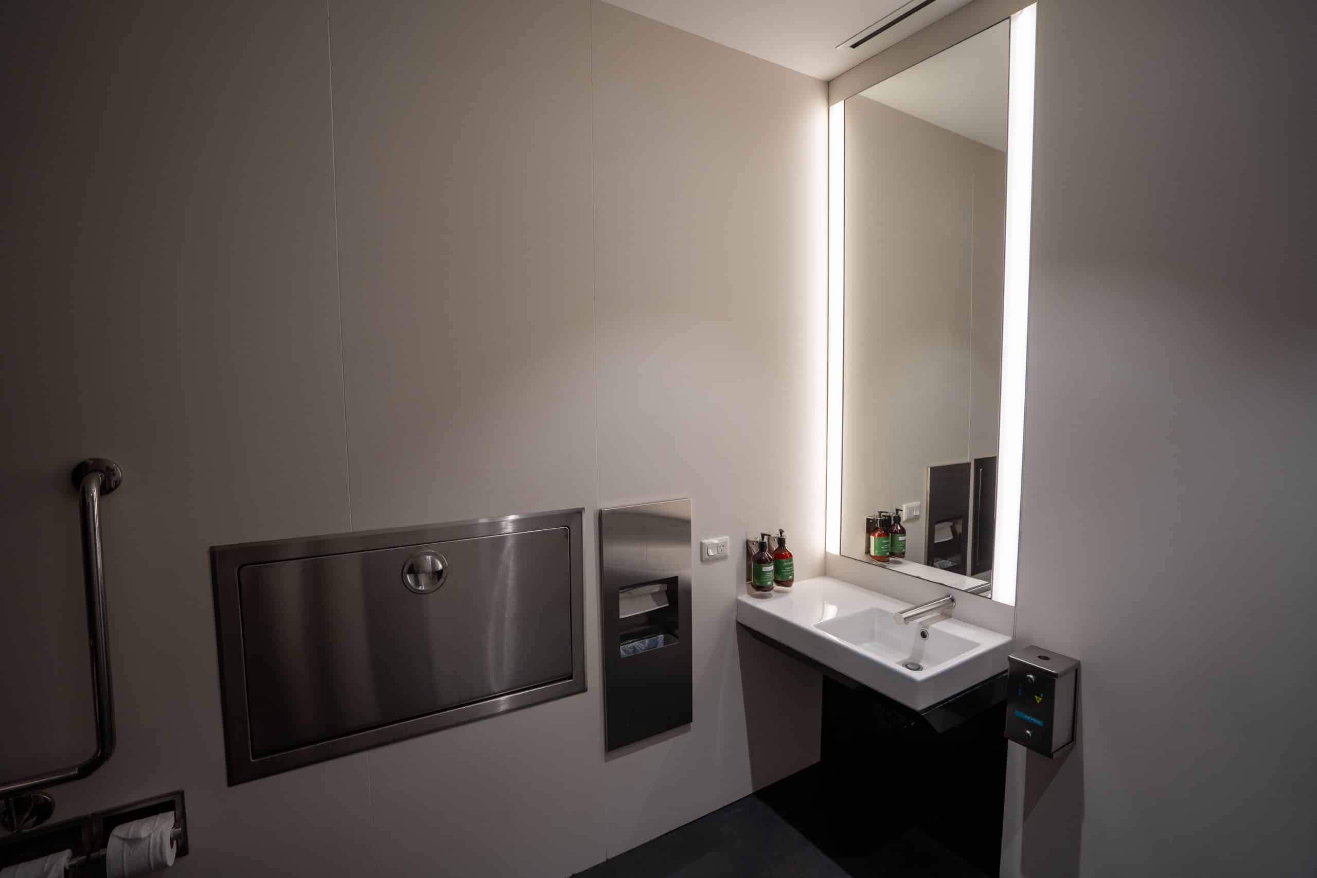 Within the Air New Zealand Lounge Brisbane, there are two exclusive shower suites discreetly positioned down a dimly lit corridor, conveniently close to the restrooms. The restrooms were well-maintained and offered a spacious layout.