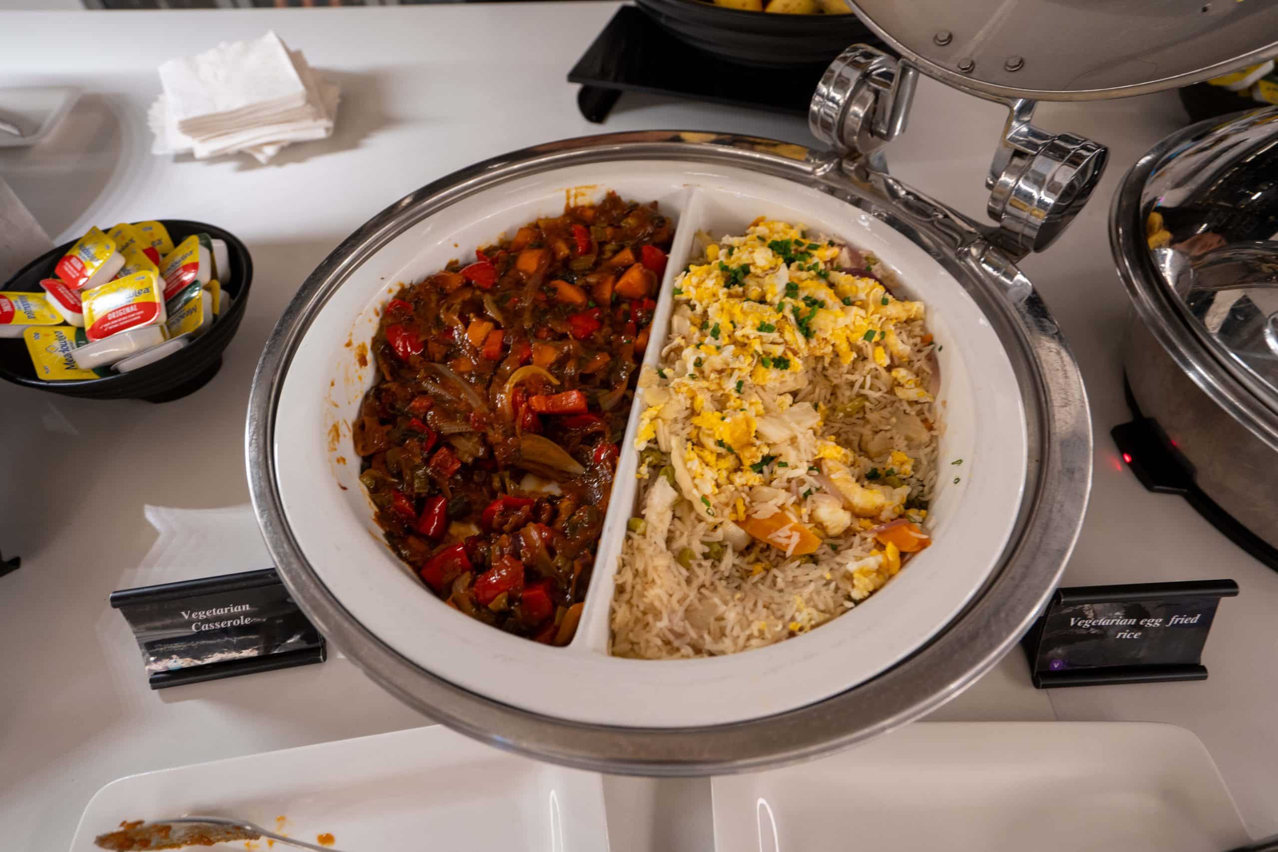 Hot dishes during my visit included vegetarian casserole, vegetarian fried rice, beef ragout, and roasted potatoes.