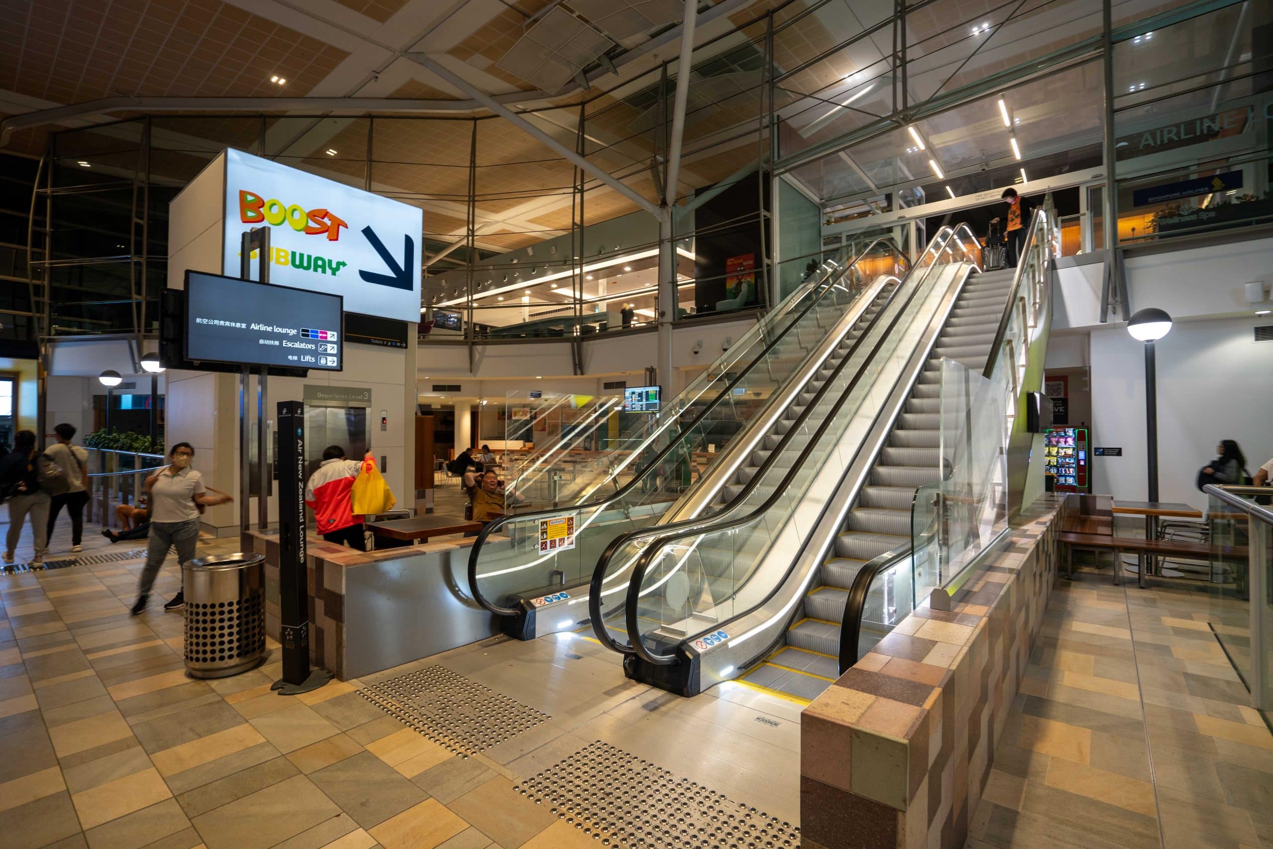 As you approach the lounge, an escalator or elevator will take you up to the lounge level.