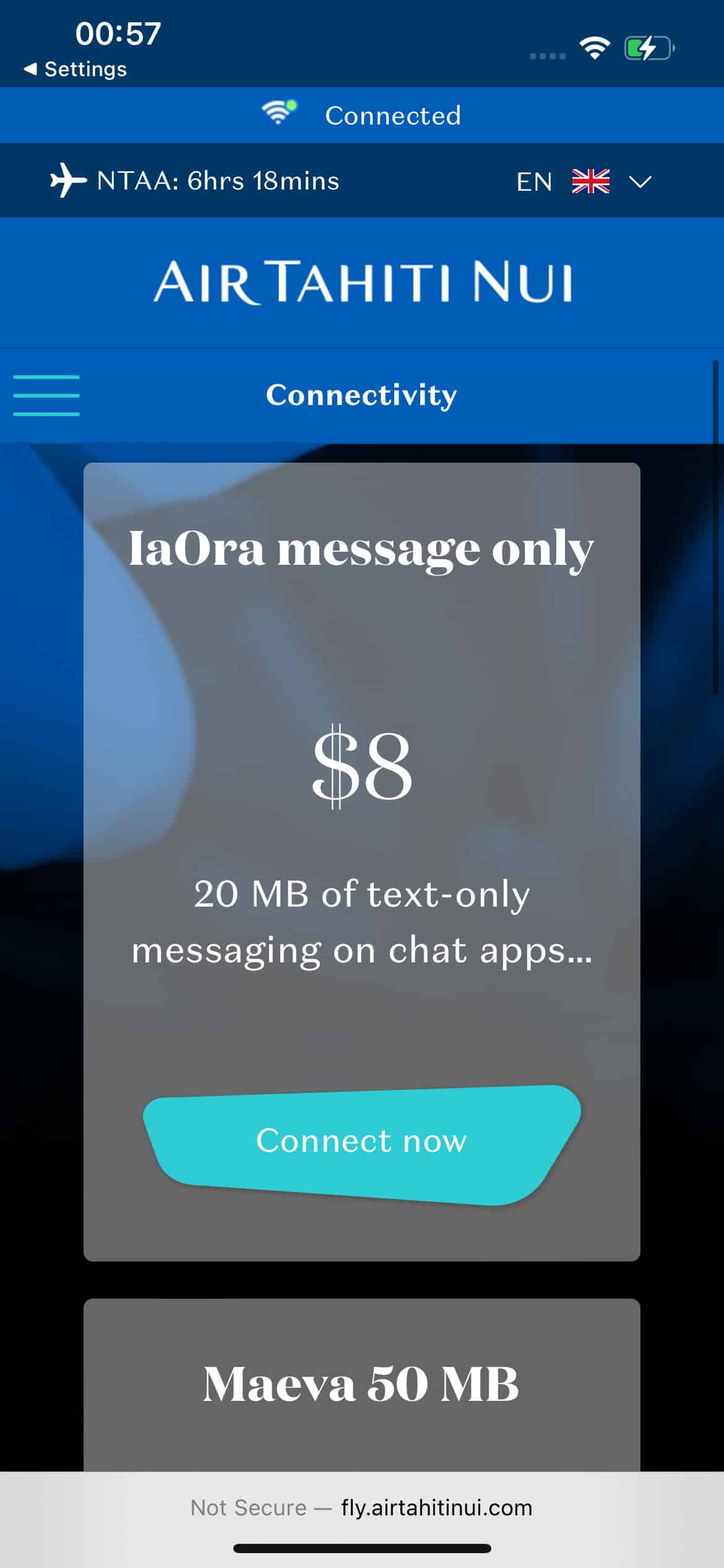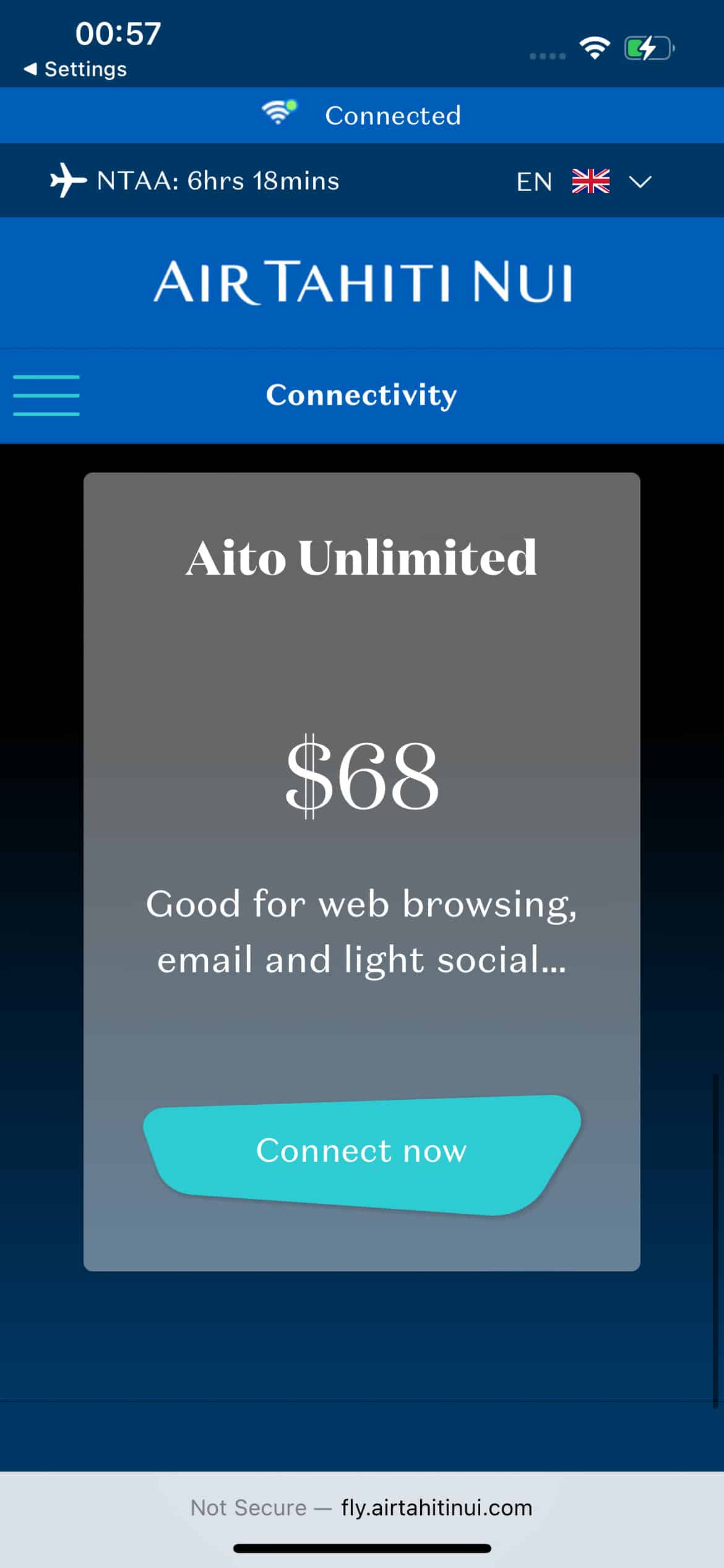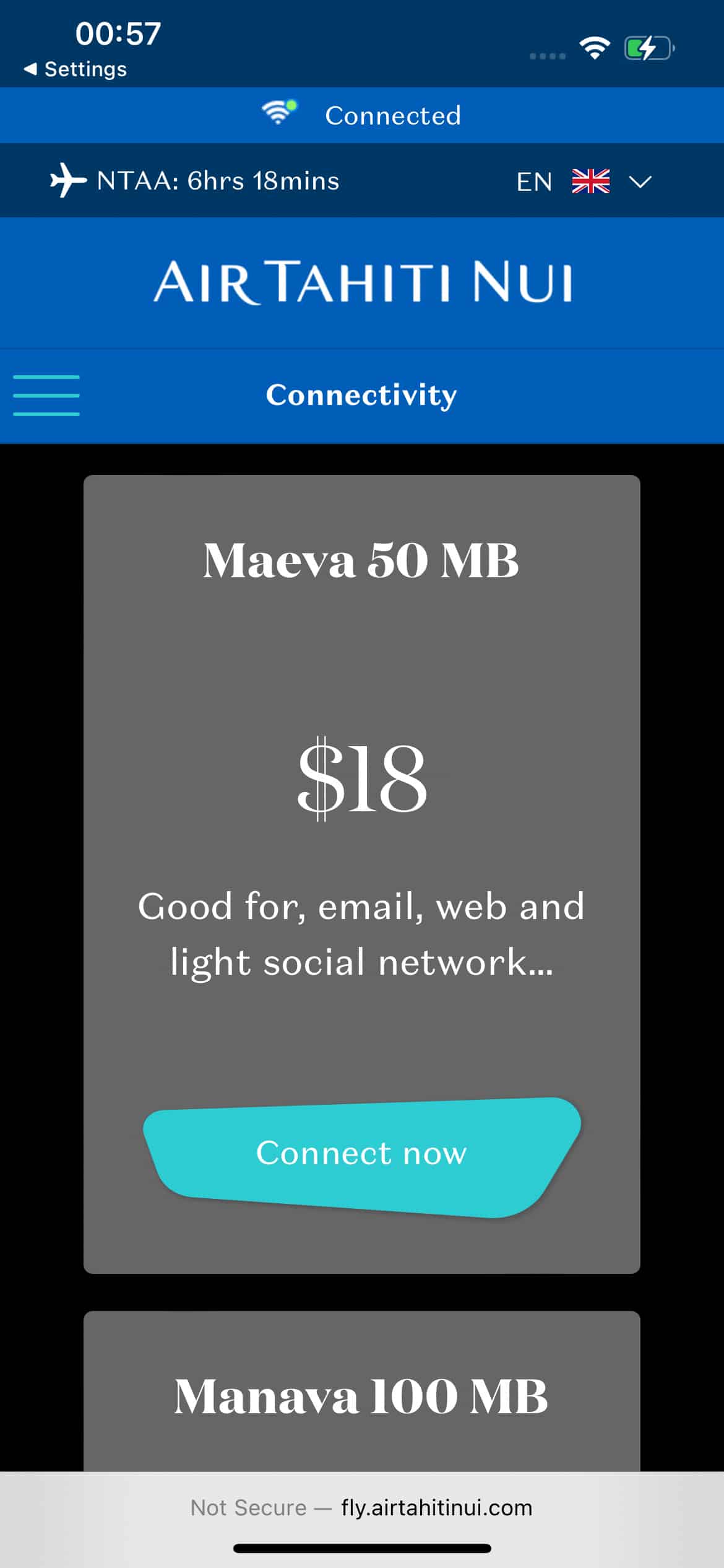 In addition to the high prices, Air Tahiti Nui’s Wi-Fi plans have restrictive data caps. Since this was an overnight flight anyway, I chose to forgo Wi-Fi this time around.