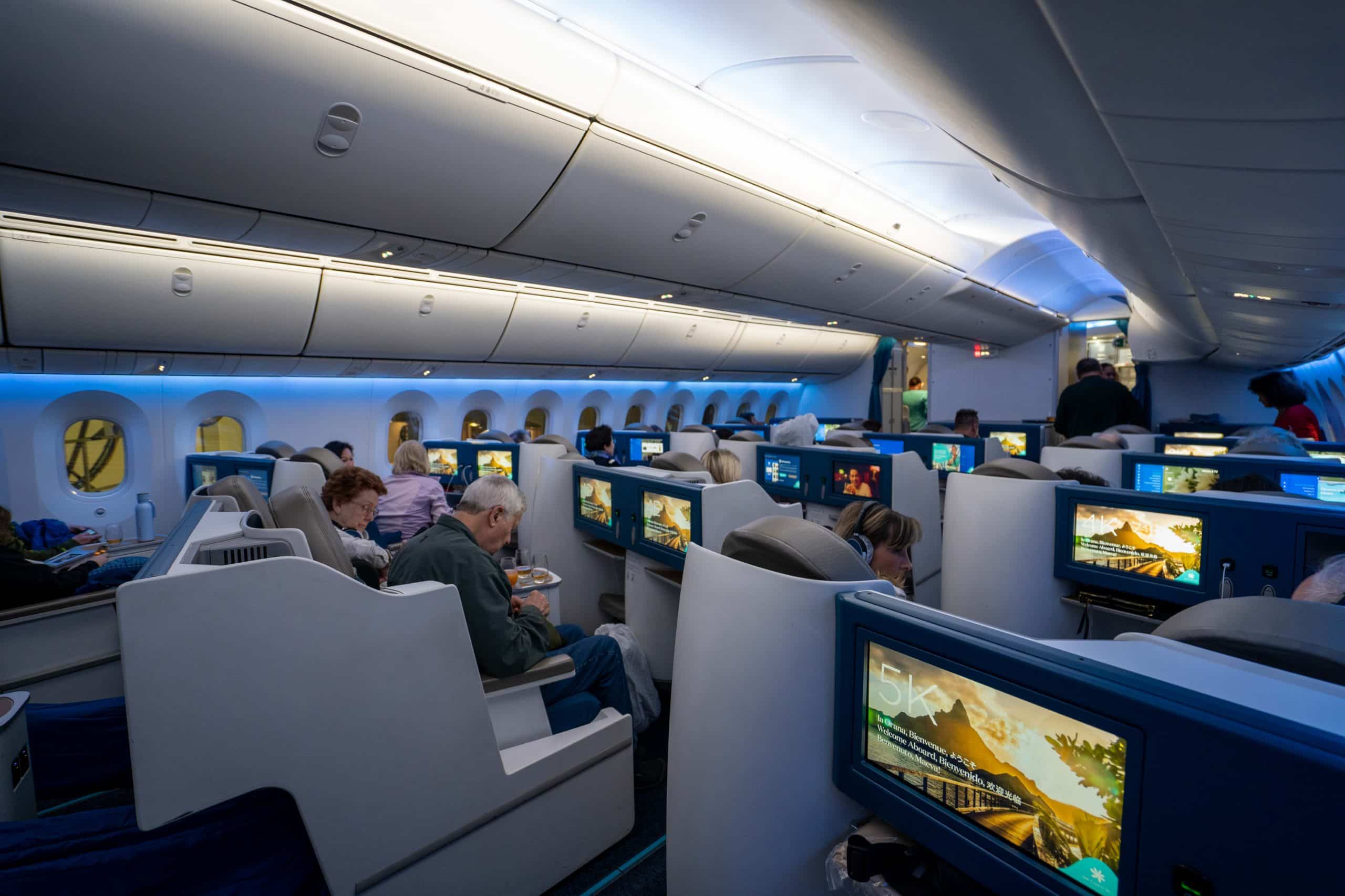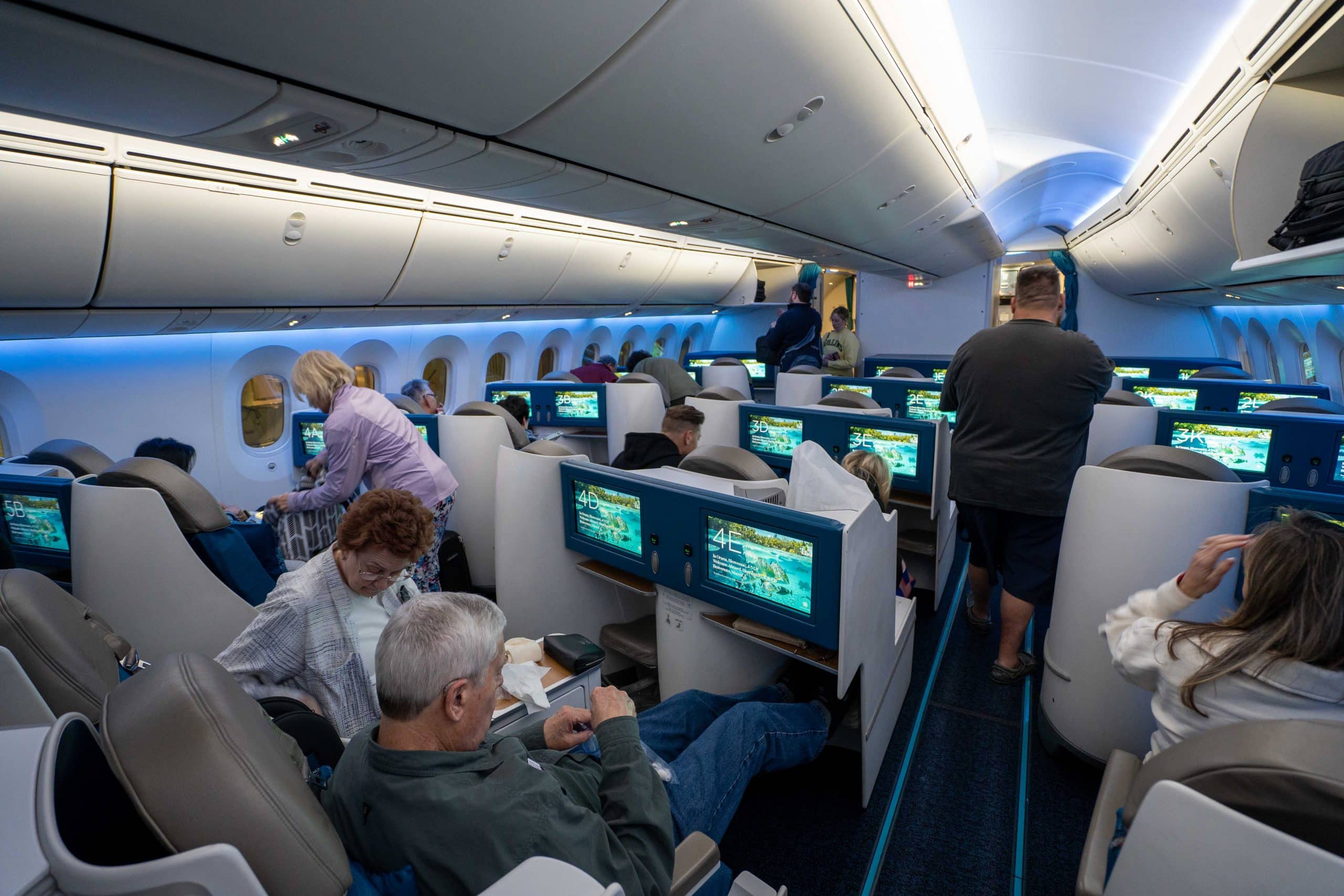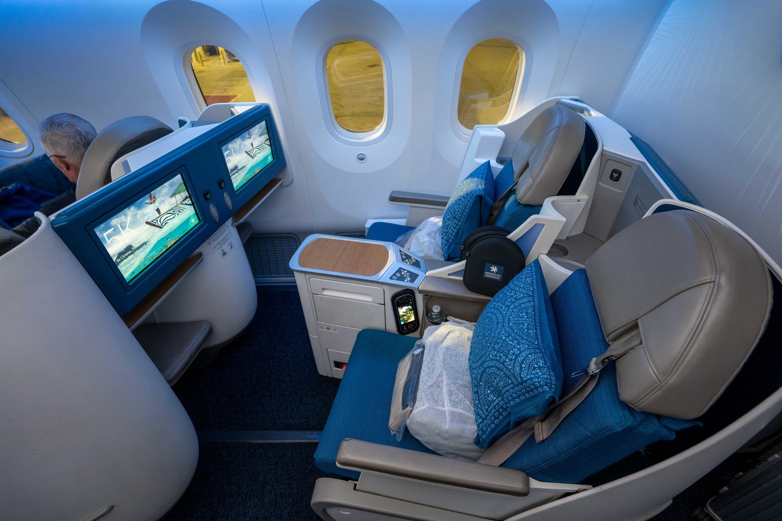 Air Tahiti Nui’s Poerava business class cabin is offered on the state-of-the-art Boeing 787-9 Dreamliner aircraft, featuring 30 business class seats spread across five rows in a 2-2-2 configuration.