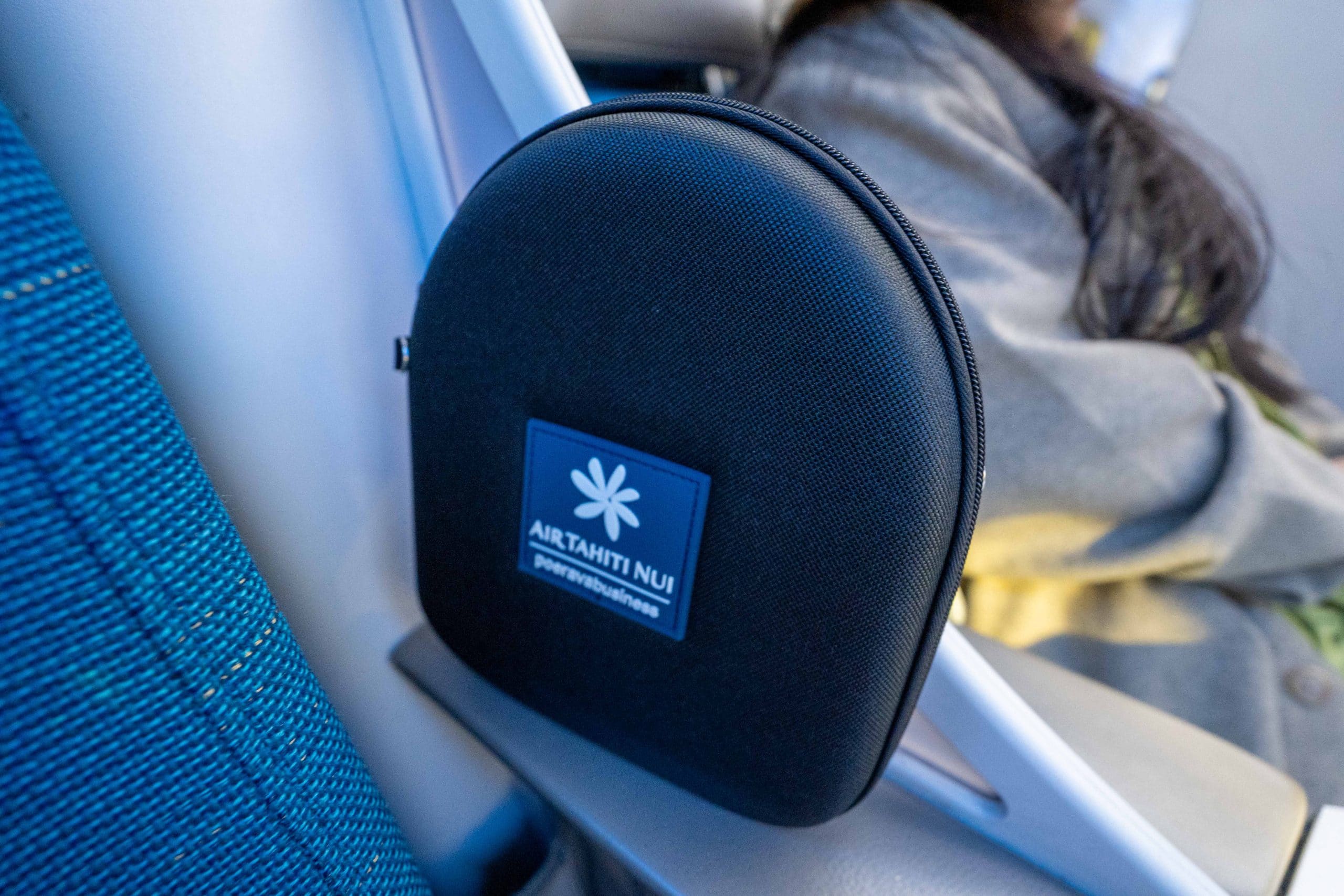 Furthermore, Air Tahiti Nui provided branded noise-cancelling headphones featuring the Tiare flower on the casing — a central symbol of the Air Tahiti Nui brand.