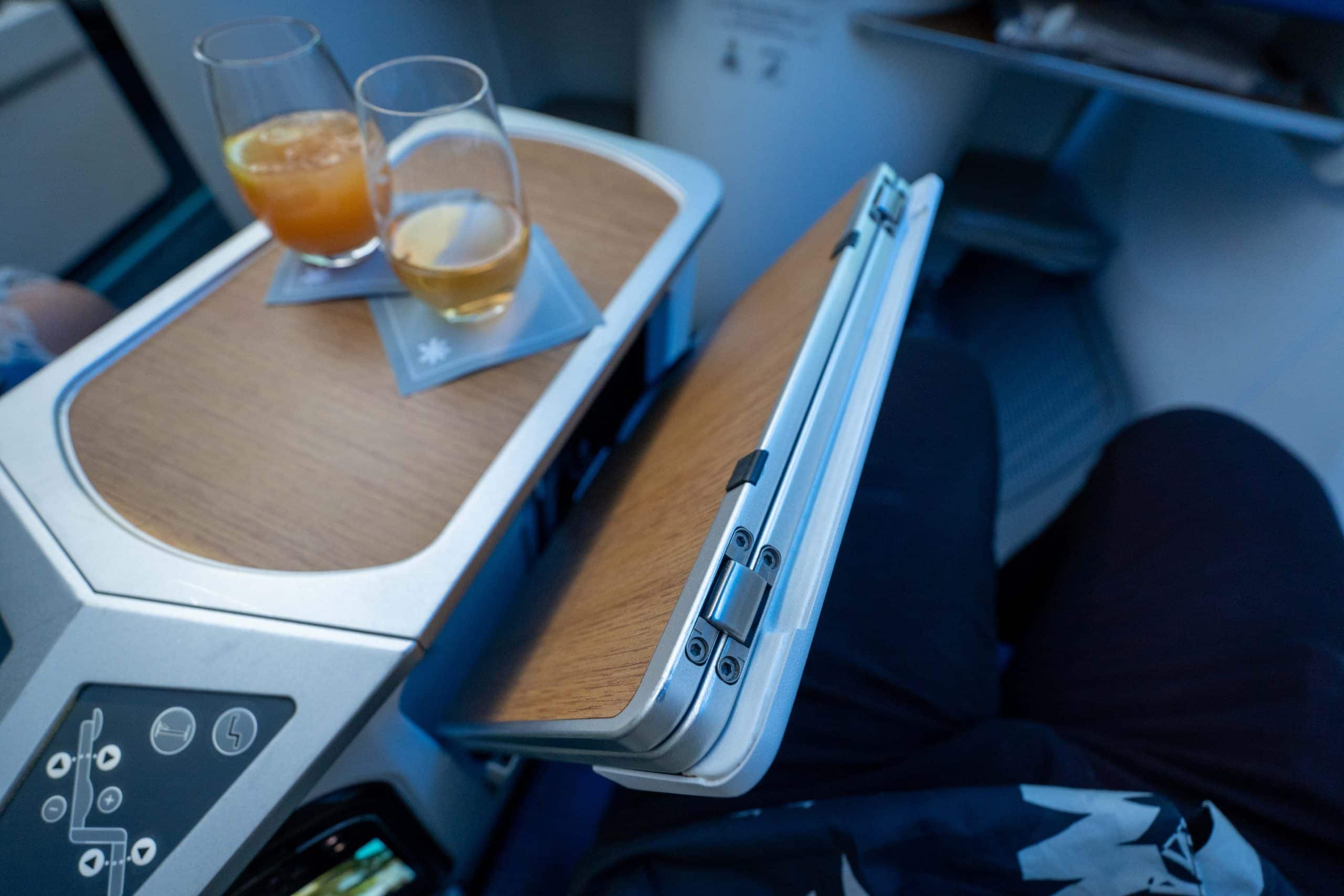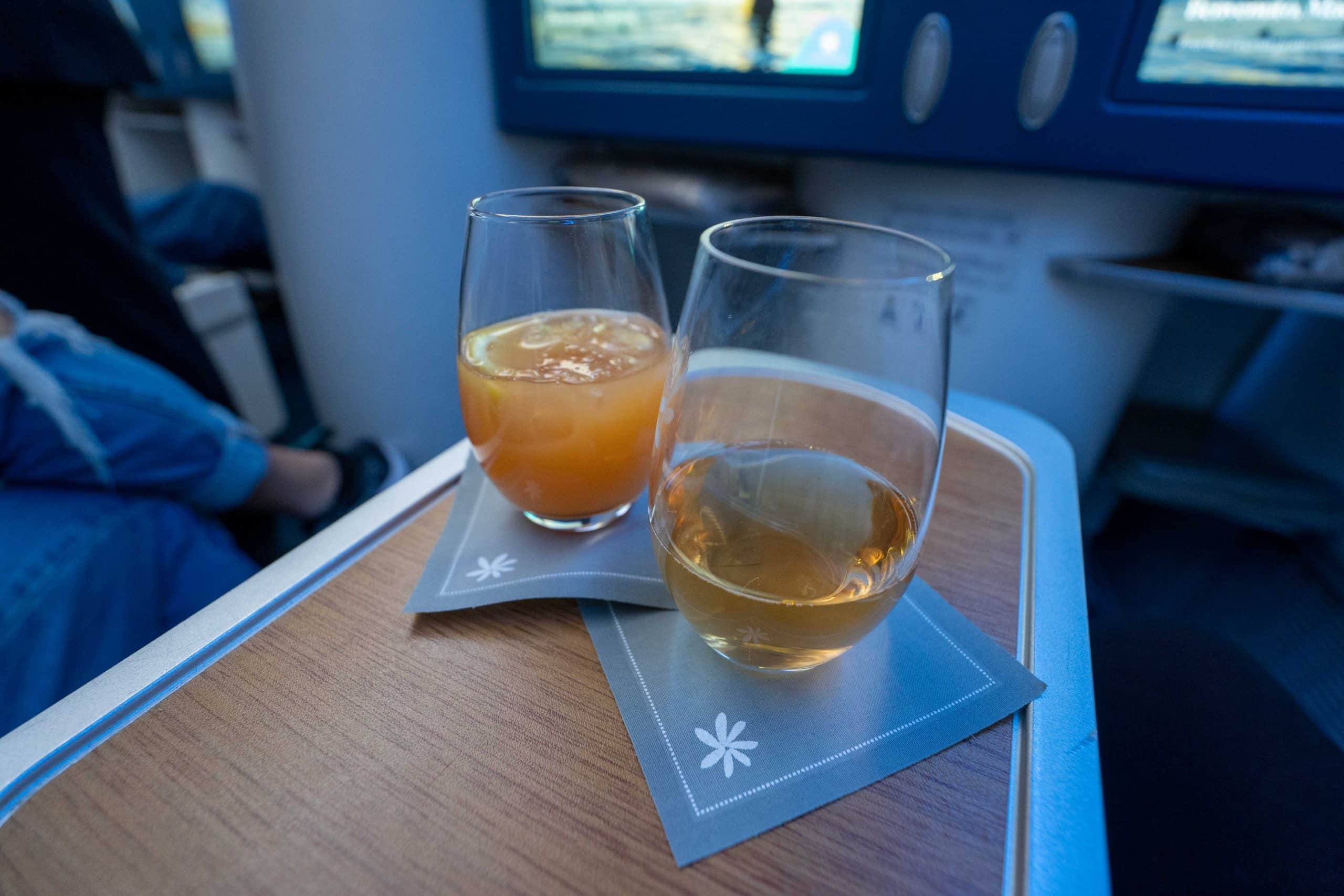 Prior to takeoff, we were warmly offered a choice of welcome beverages: sparkling wine or tropical juice. I chose the sparkling wine, while Jessy opted for the juice.