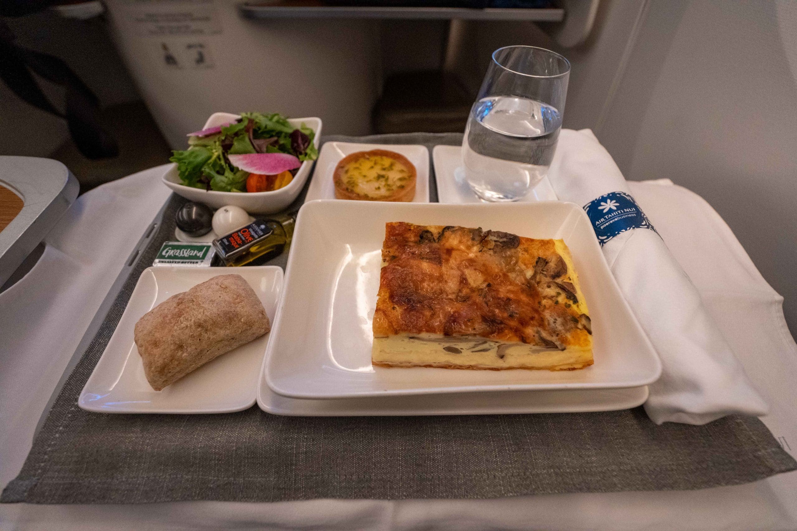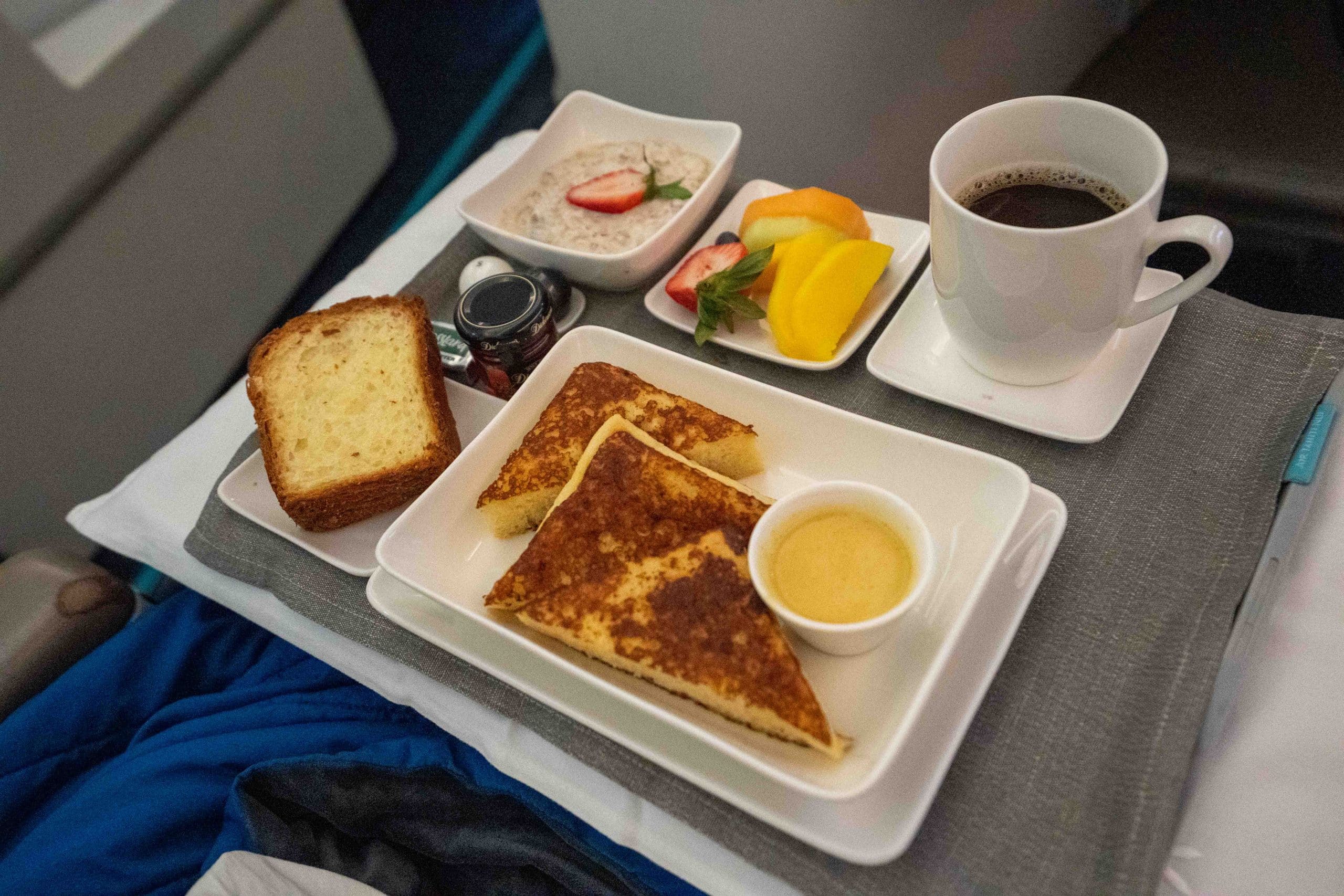 It’s worth noting that there are daytime and overnight services on Air Tahiti Nui business class from Los Angeles to Papeete. On this overnight service, we’d pretty much be eating, sleeping, and landing in Tahiti, without much else to speak of when it comes to the in-flight service.