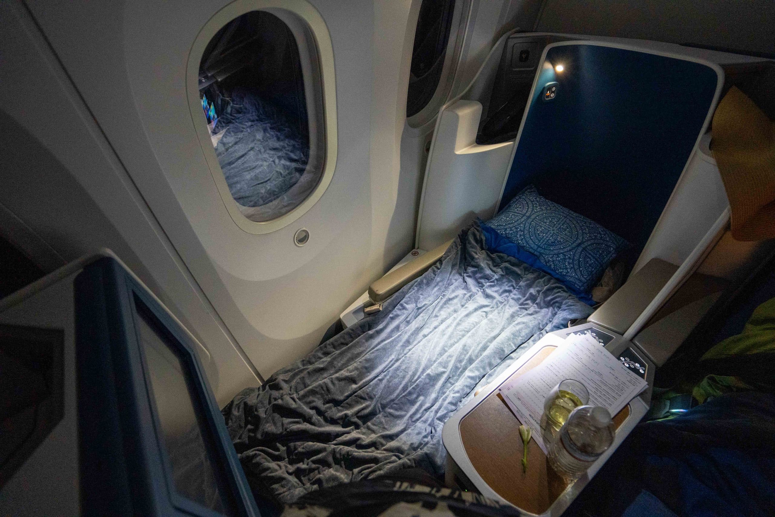 During this part of the journey, I reclined my seat into lie-flat mode and managed to get a restful six hours of sleep. The seat was adequately wide, ensuring a comfortable rest.
