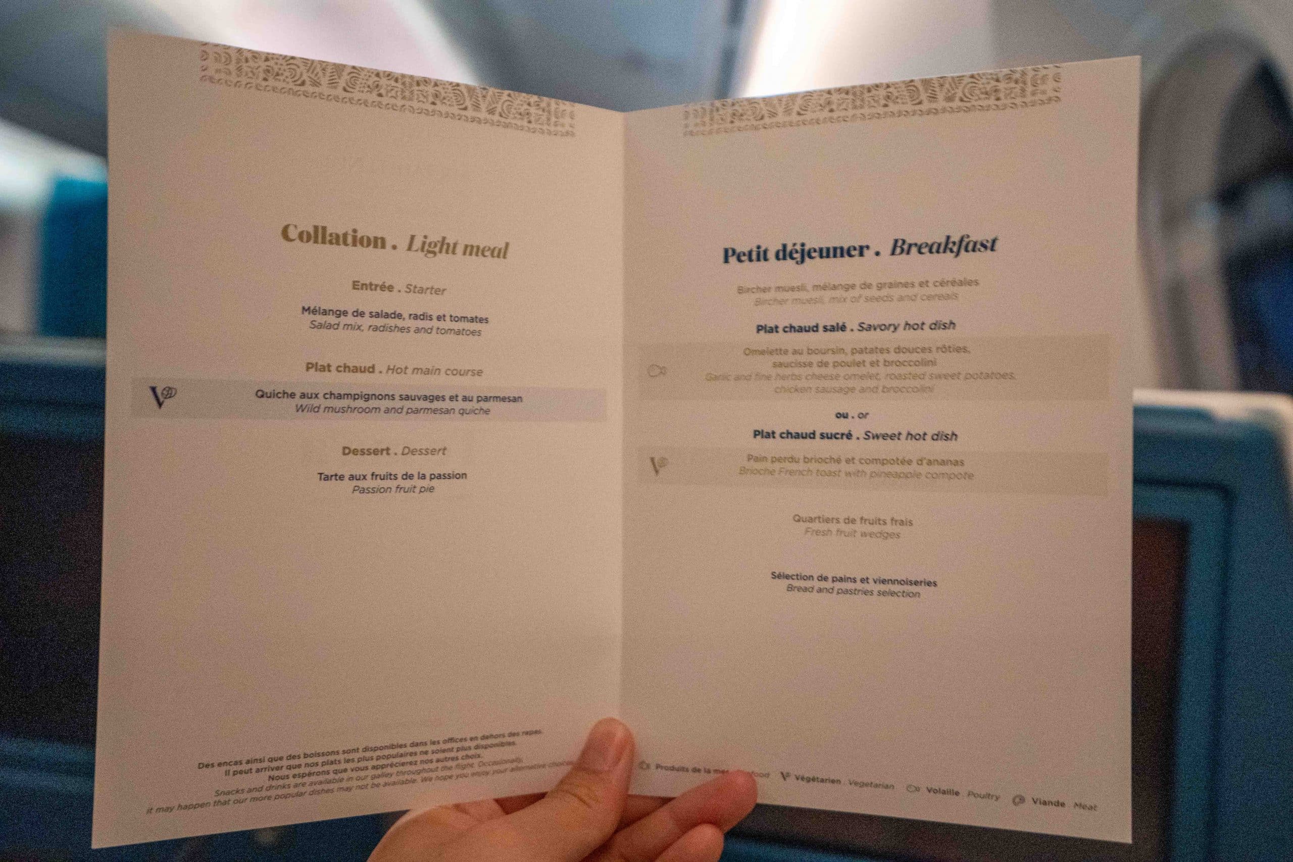 Shortly thereafter, the in-flight food and beverage menu was presented to us.