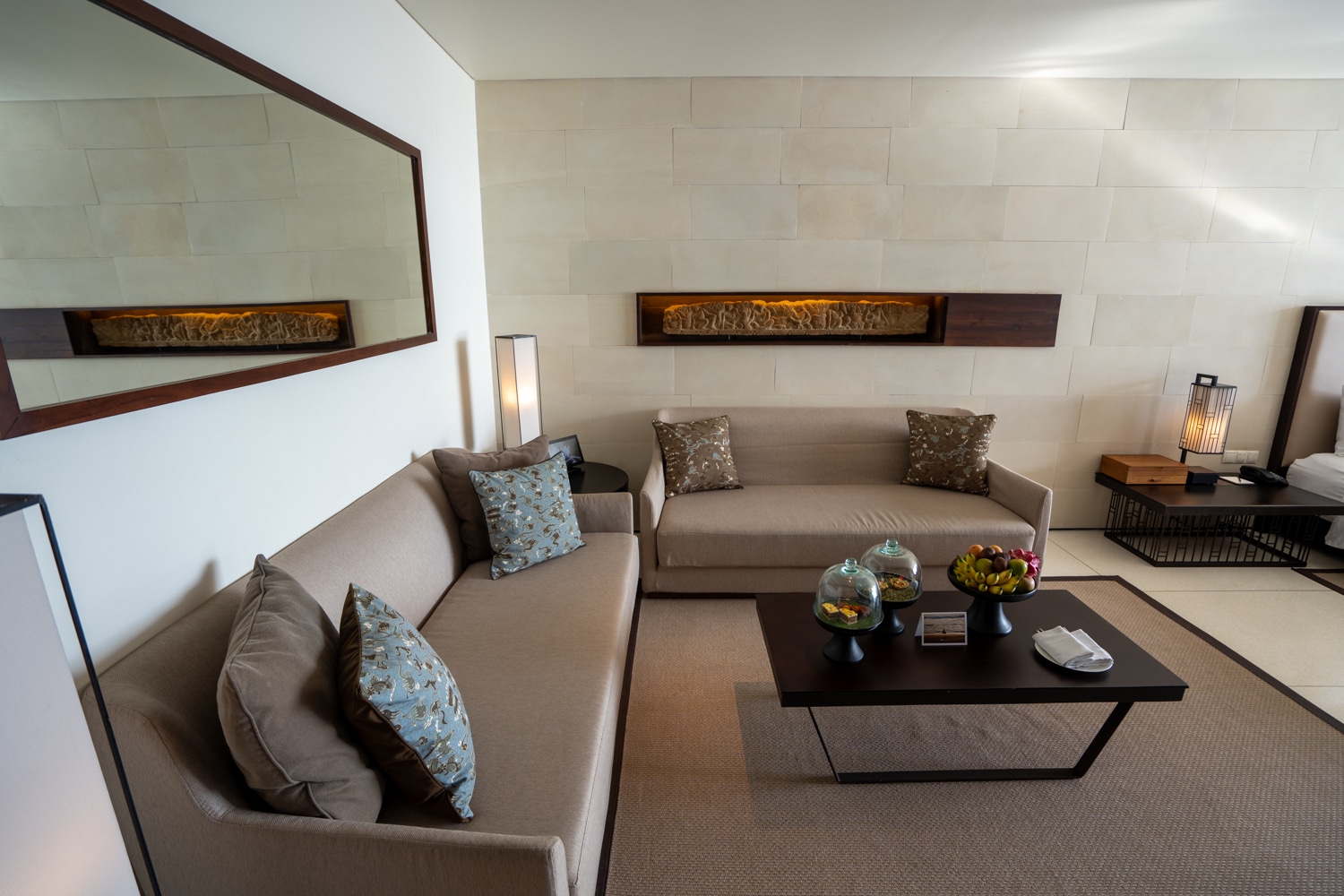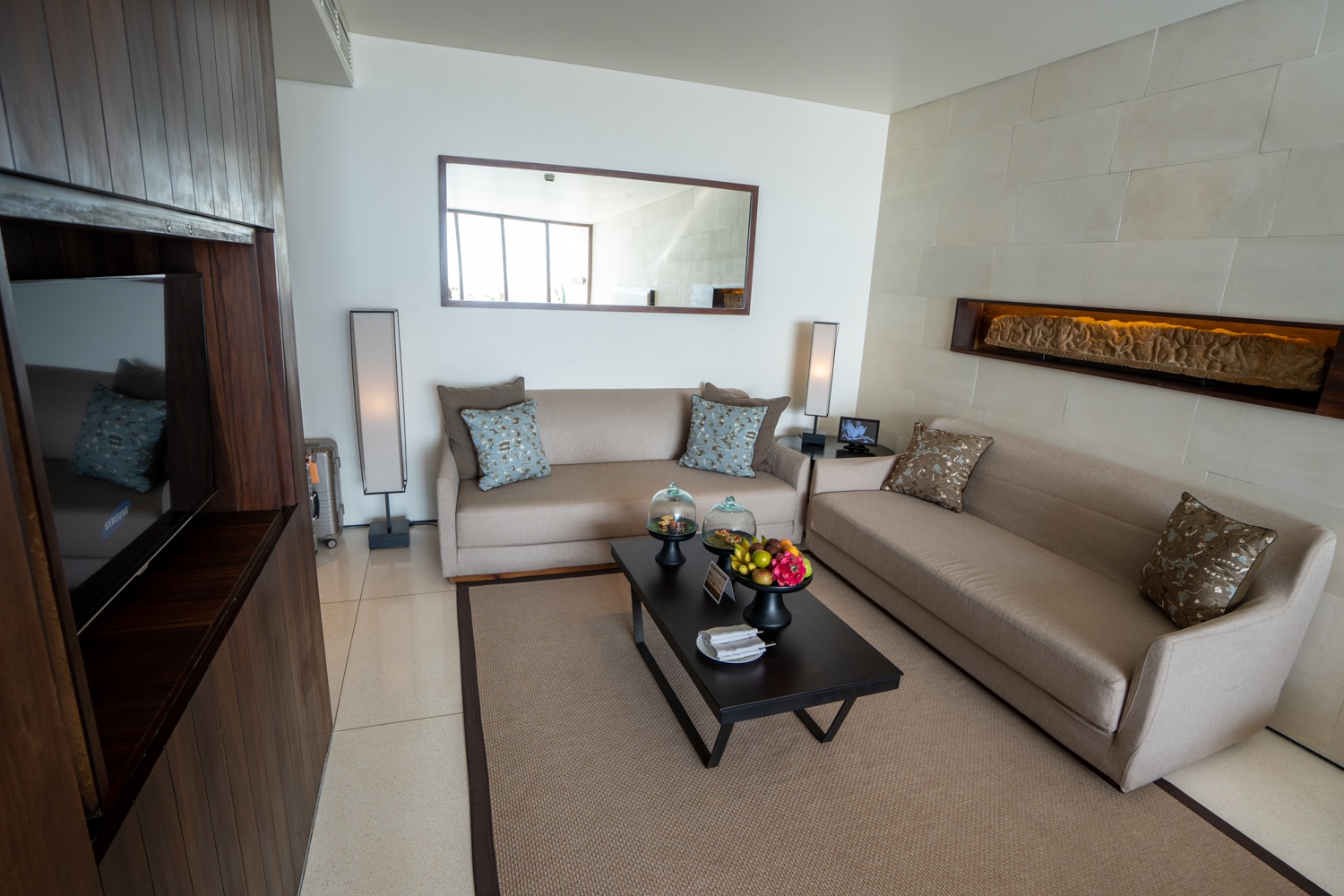 As you step into the Alila Ocean View Suite, there’s a short foyer just before you’re greeted by a seating area that features two comfortable sofas, facing the flat-screen TV on the opposite wall.