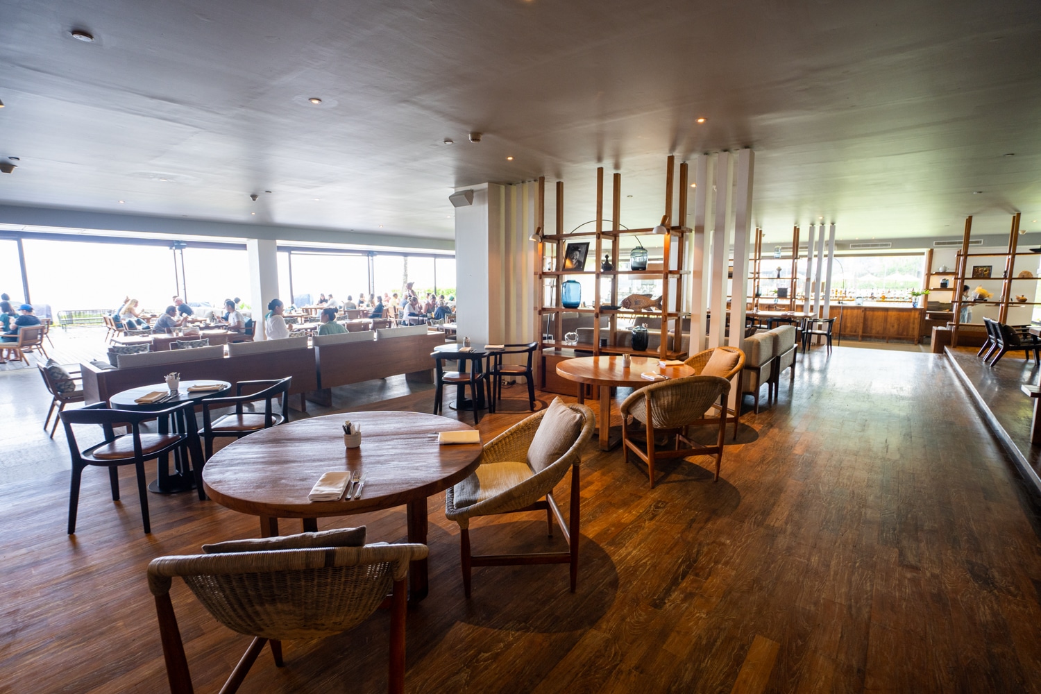 The restaurant is open from 7–11am for breakfast, and is located right on the beachfront with panoramic views of the ocean. The space serves as a great spot for your first sip of coffee in the morning.