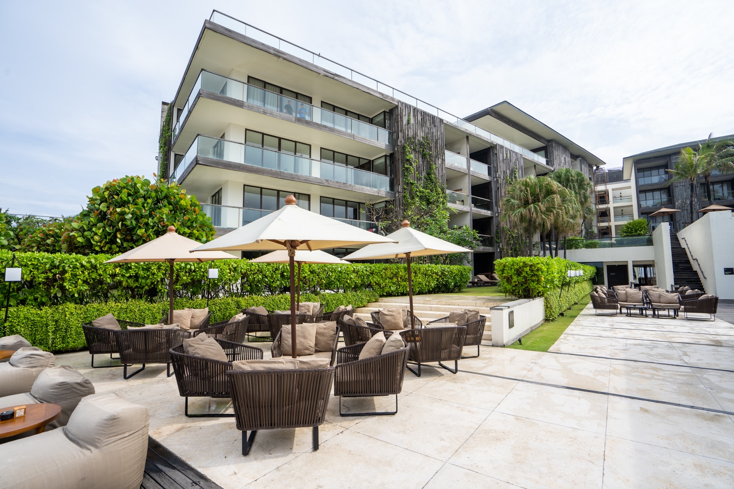 Arriving at the Alila Seminyak in Bali, I immediately noticed a façade that was a perfect blend of modern and traditional Balinese elements.
