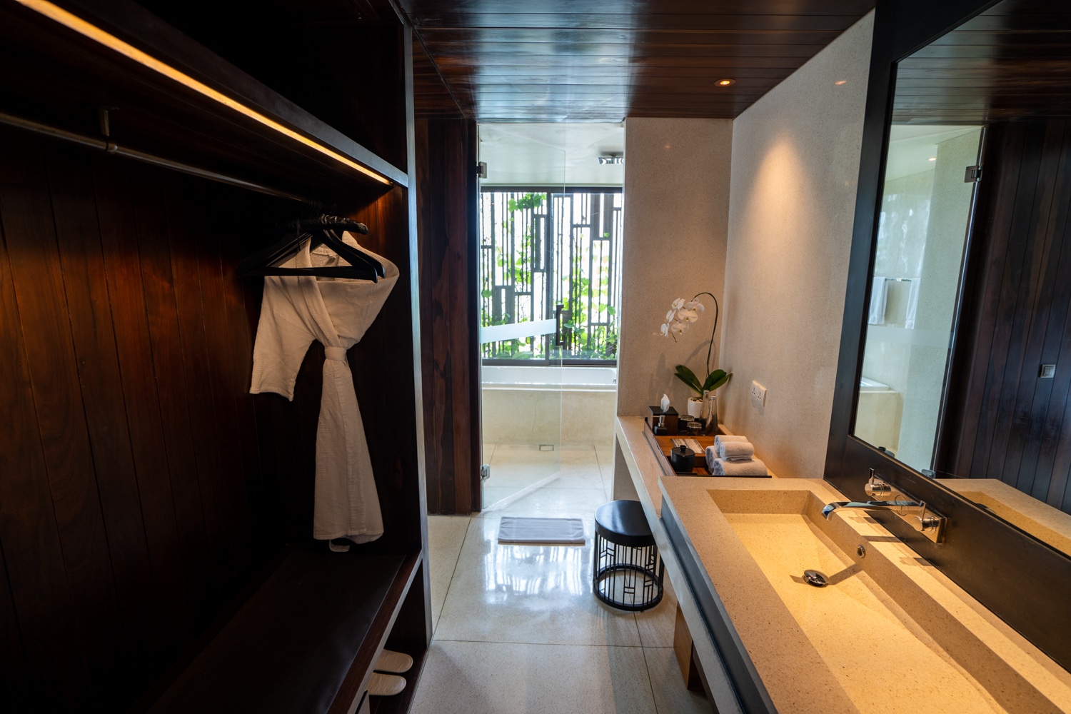I found the walk-through design of the bathroom particularly appealing, further enhanced by the separate wet room for a shower and bathtub.