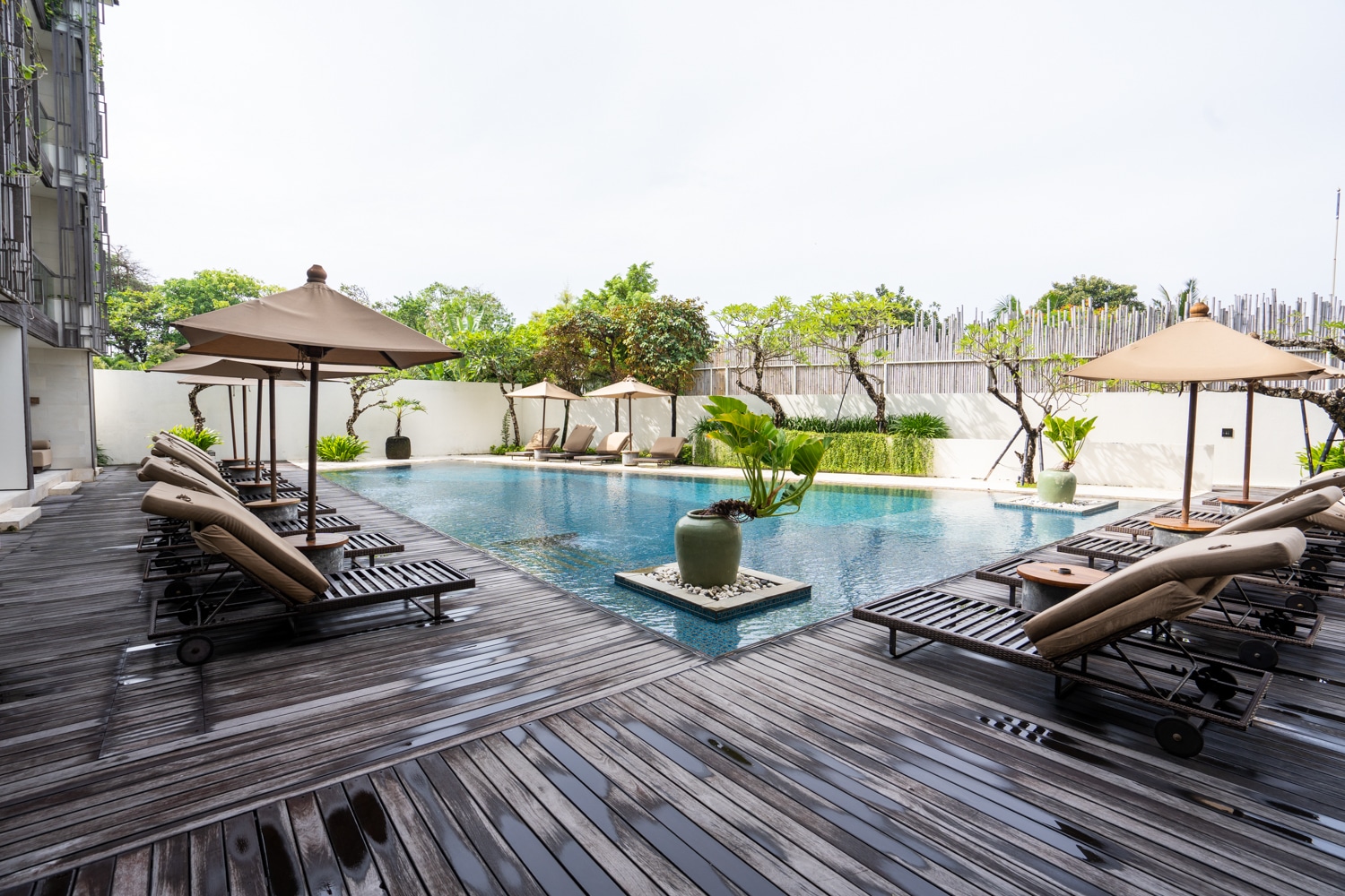 There are four pools in total at the Alila Seminyak. The main pool, which is the party pool located at ground level adjacent to the Beach Bar, is surrounded by ample loungers and beach chairs.