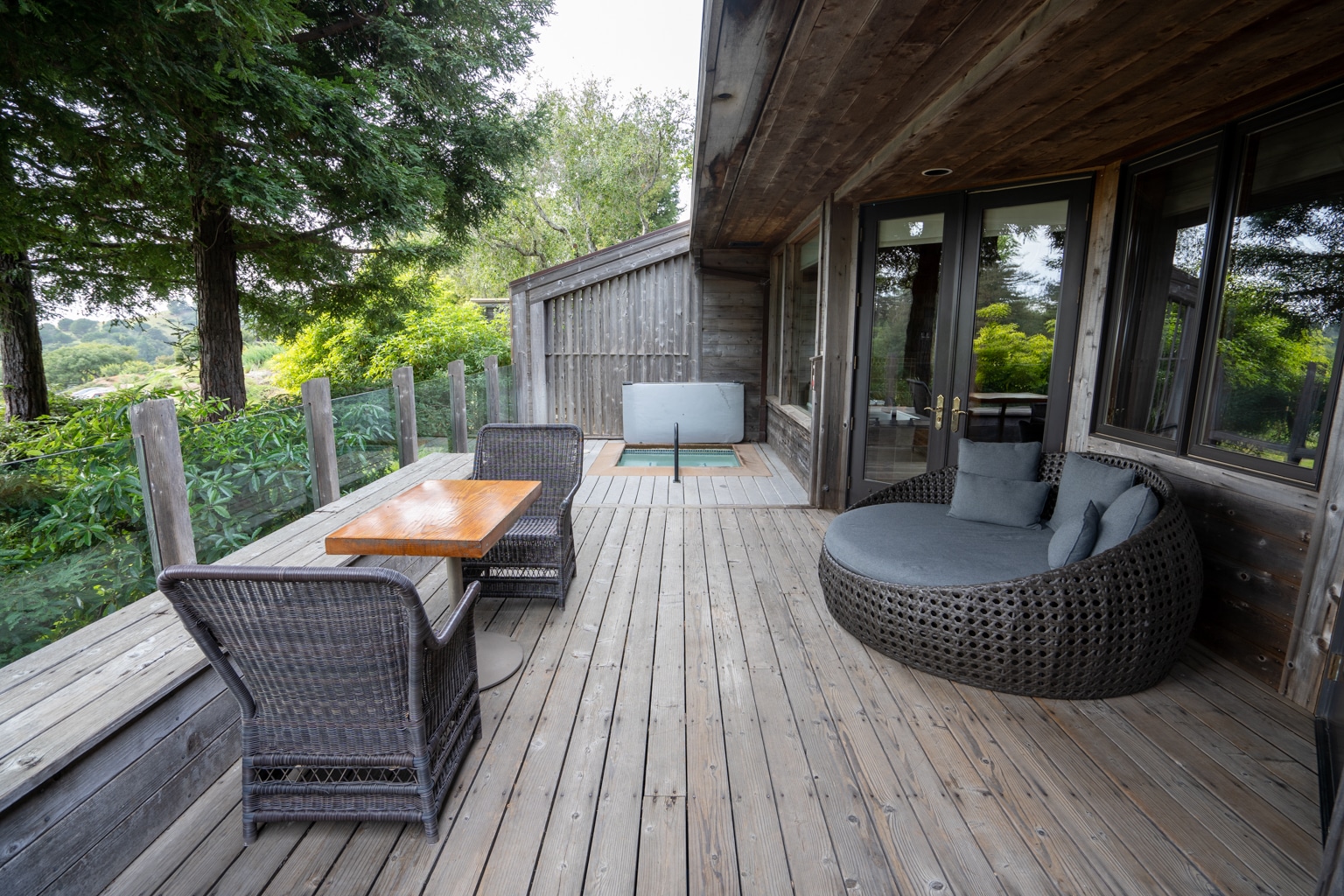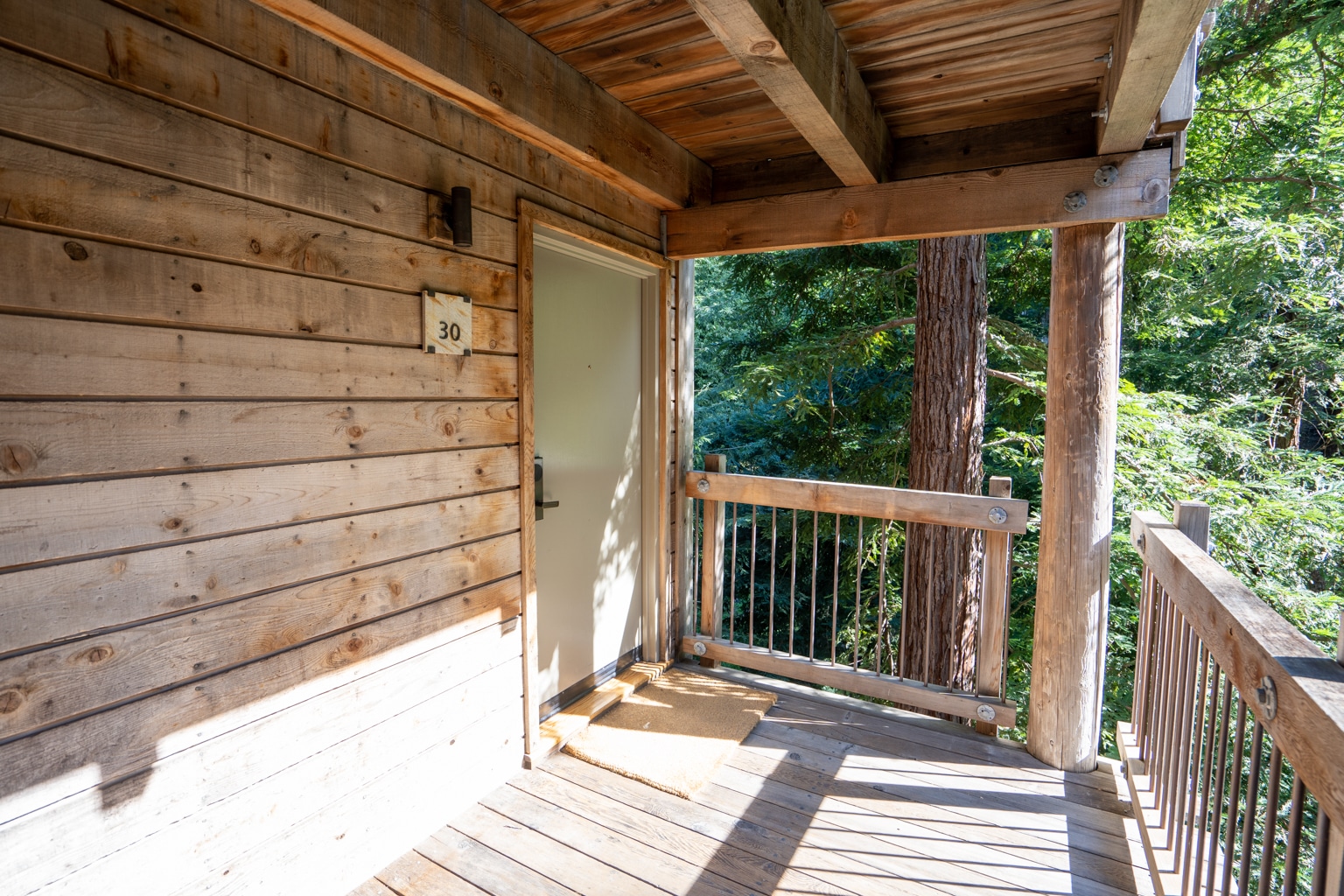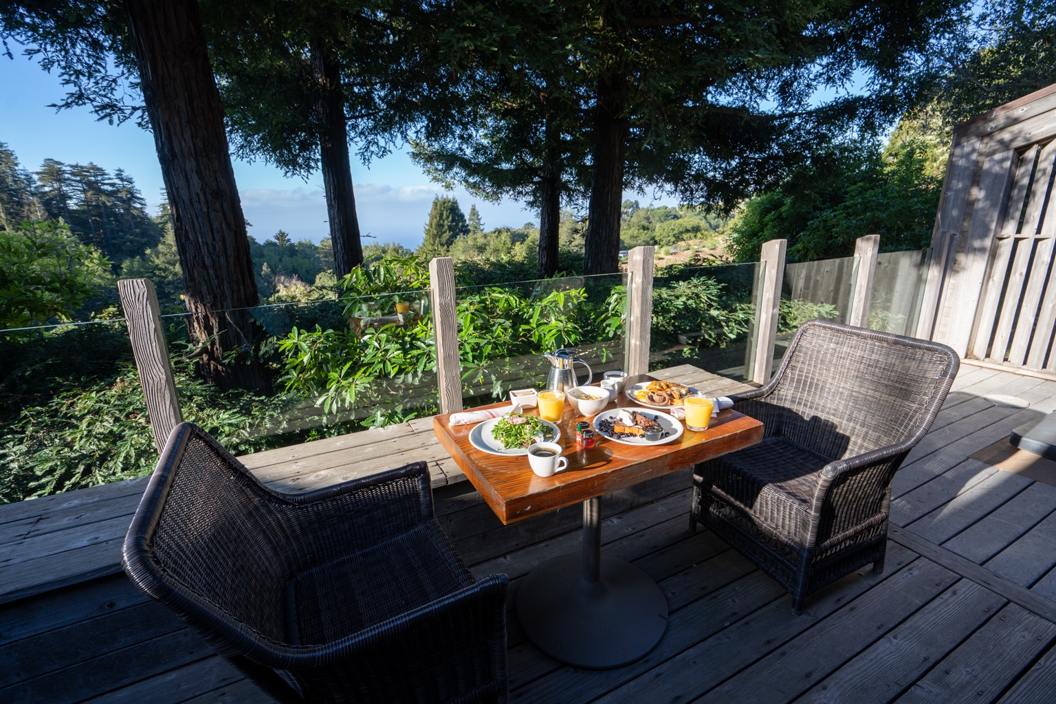 To its right, you’ll find a door leading to the balcony, with views facing the serenity of the redwood forest. I really enjoyed sitting out here in the morning with panoramic views of nature with my first cup of coffee in hand.
