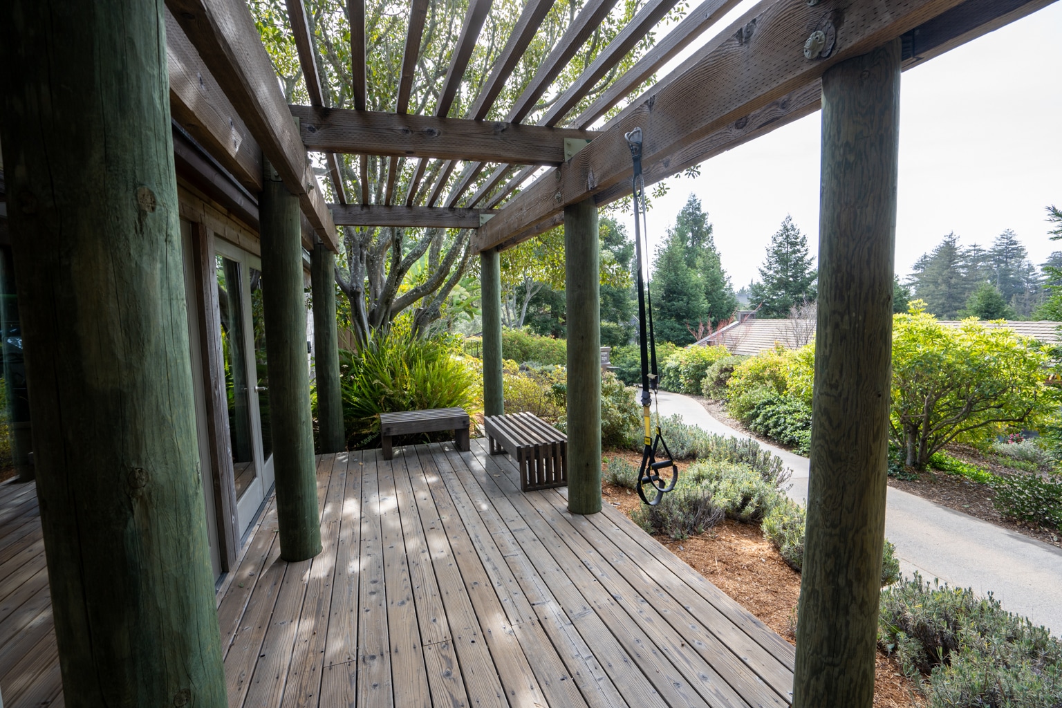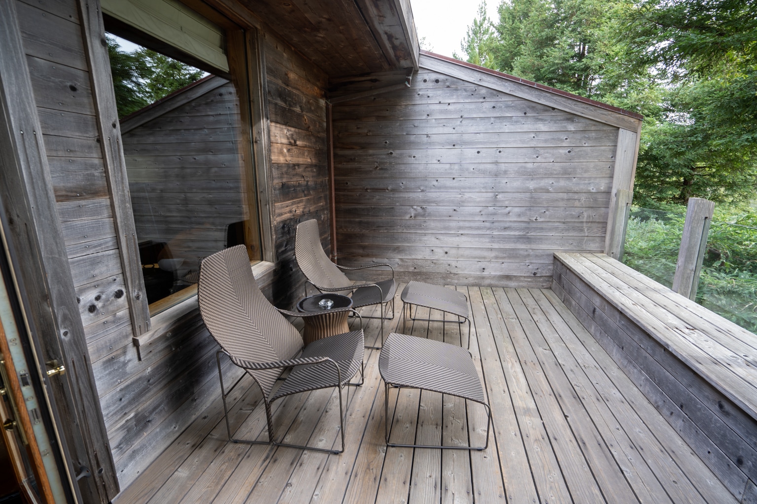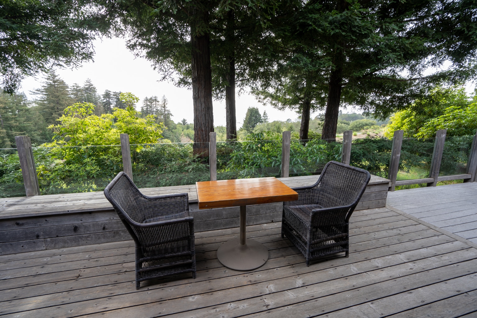 To its right, you’ll find a door leading to the balcony, with views facing the serenity of the redwood forest. I really enjoyed sitting out here in the morning with panoramic views of nature with my first cup of coffee in hand.