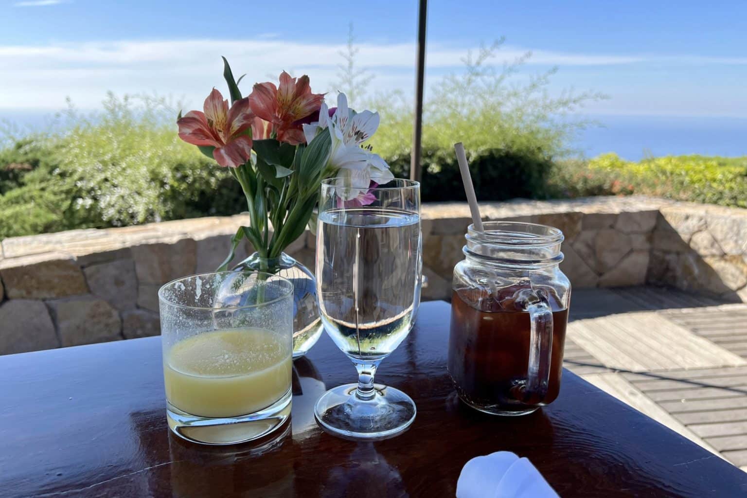 For our first lunch, we enjoyed our meal poolside, while the following day we sat out on the lawn chairs in the meadows and ate while overlooking the ocean.
