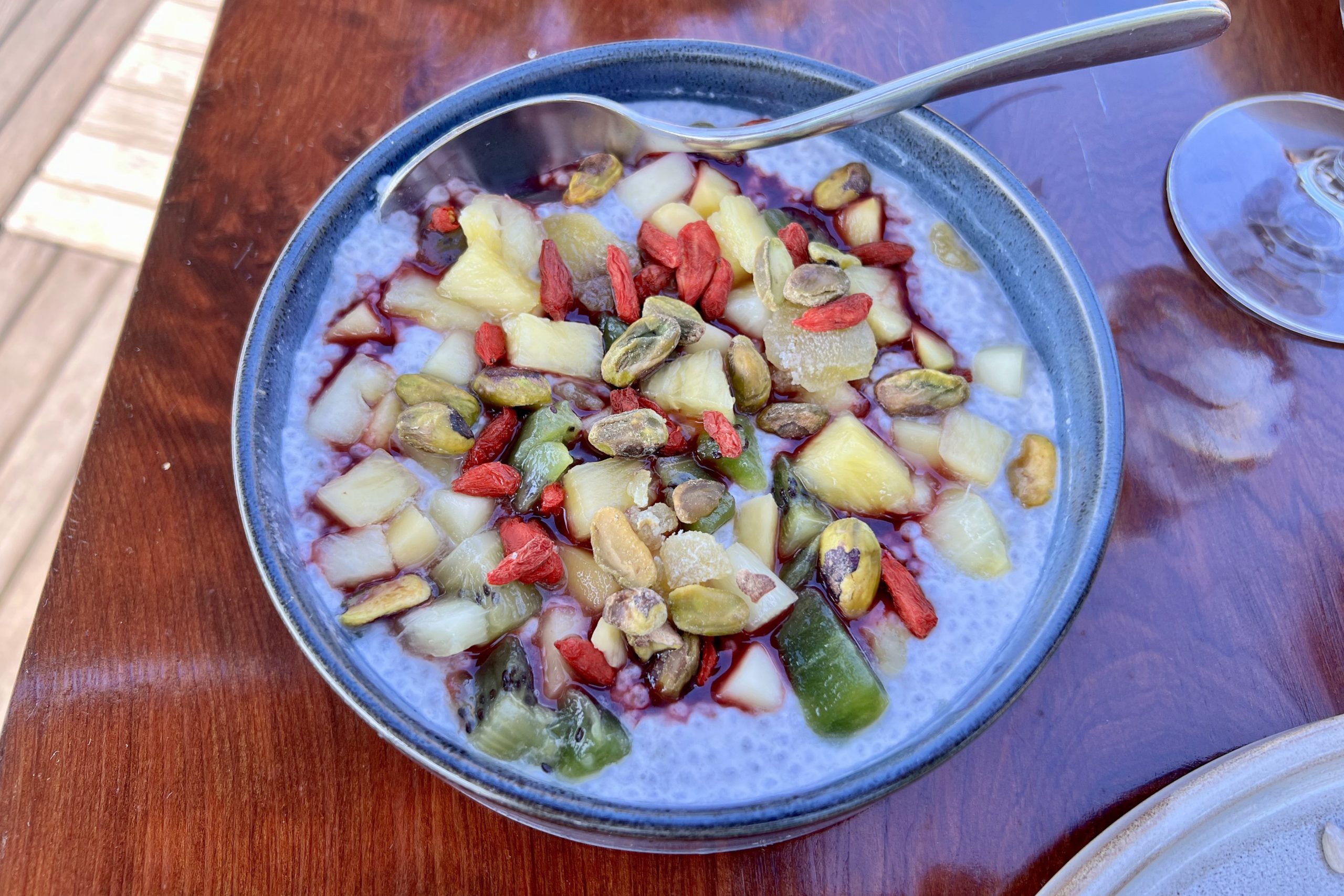 Some of the lighter offerings we tried included a chia seed breakfast bowl, mashed avocado toast, Greek yogurt parfait, bagel with lox, and steel-cut oatmeal.