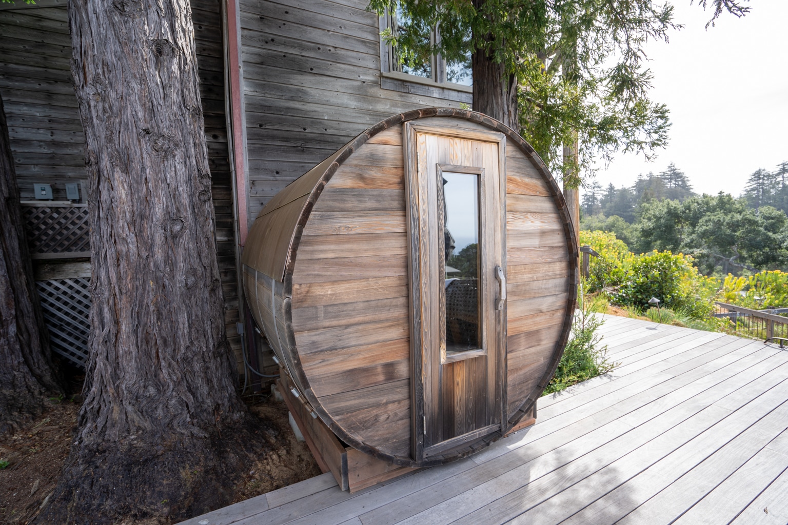 The spa has new outdoor cabanas for spa treatments among the redwoods and fresh air, and also features a sauna located next to the spa.