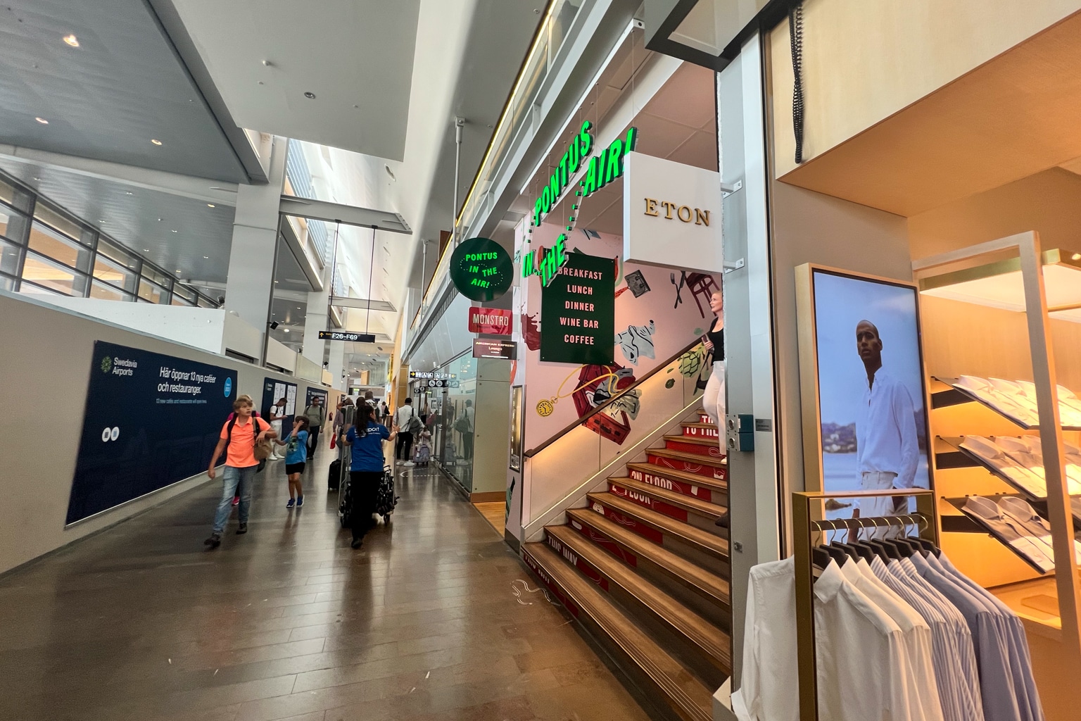 The lounge is located after security, one level up from Terminal 5. Taking the stairs up to the mezzanine level, you can find it between the “A” and “F” gates, nestled amongst the shops at Stockholm Arlanda.