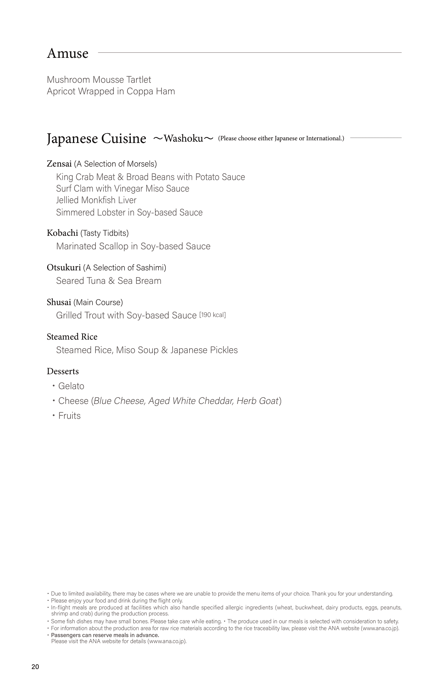 As is customary on ANA flights, the menu offered a choice between a Japanese and Western meal for both the first and second meal services, and guests are encouraged to pick one of the set menus for each of their meals.