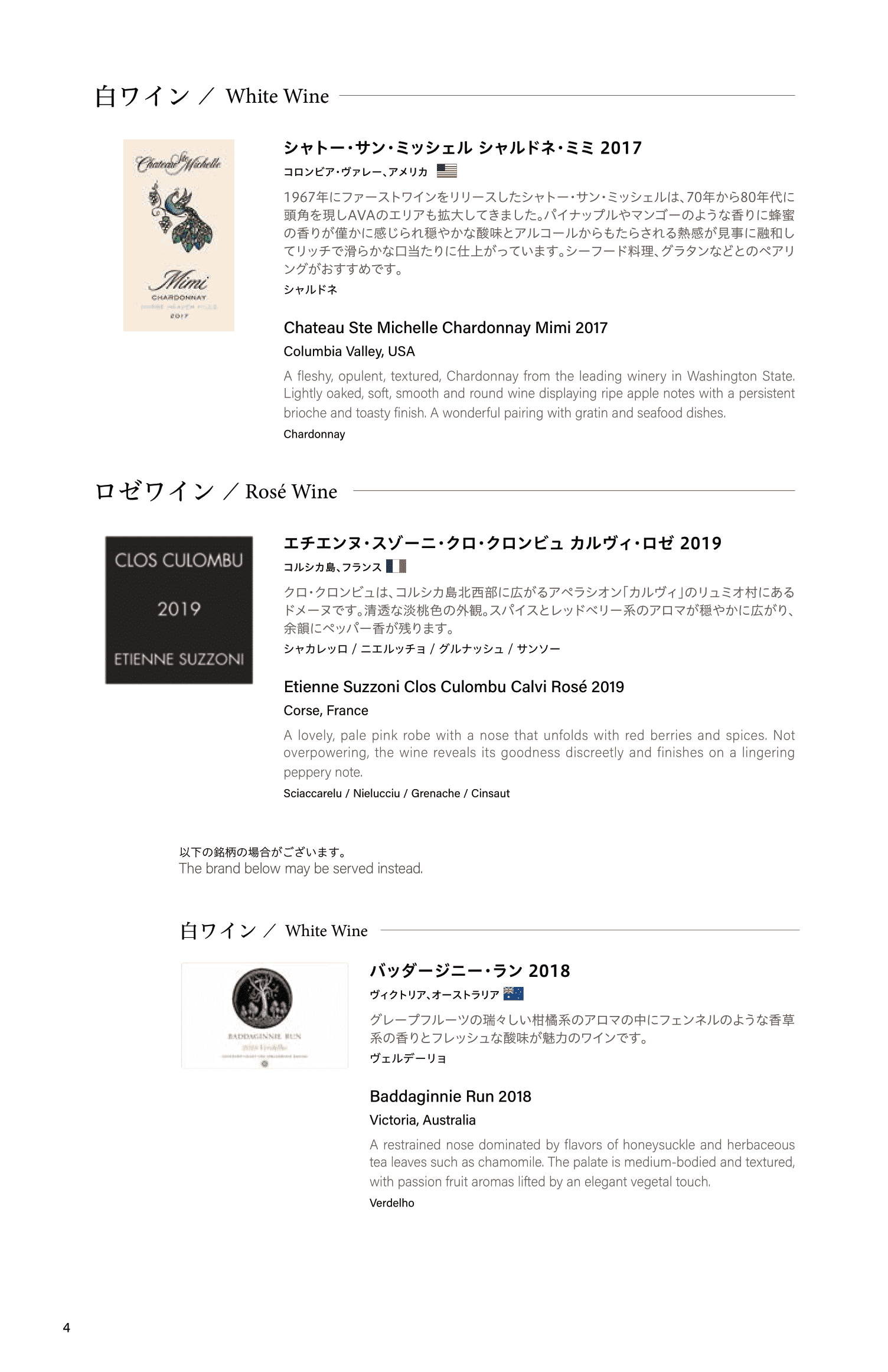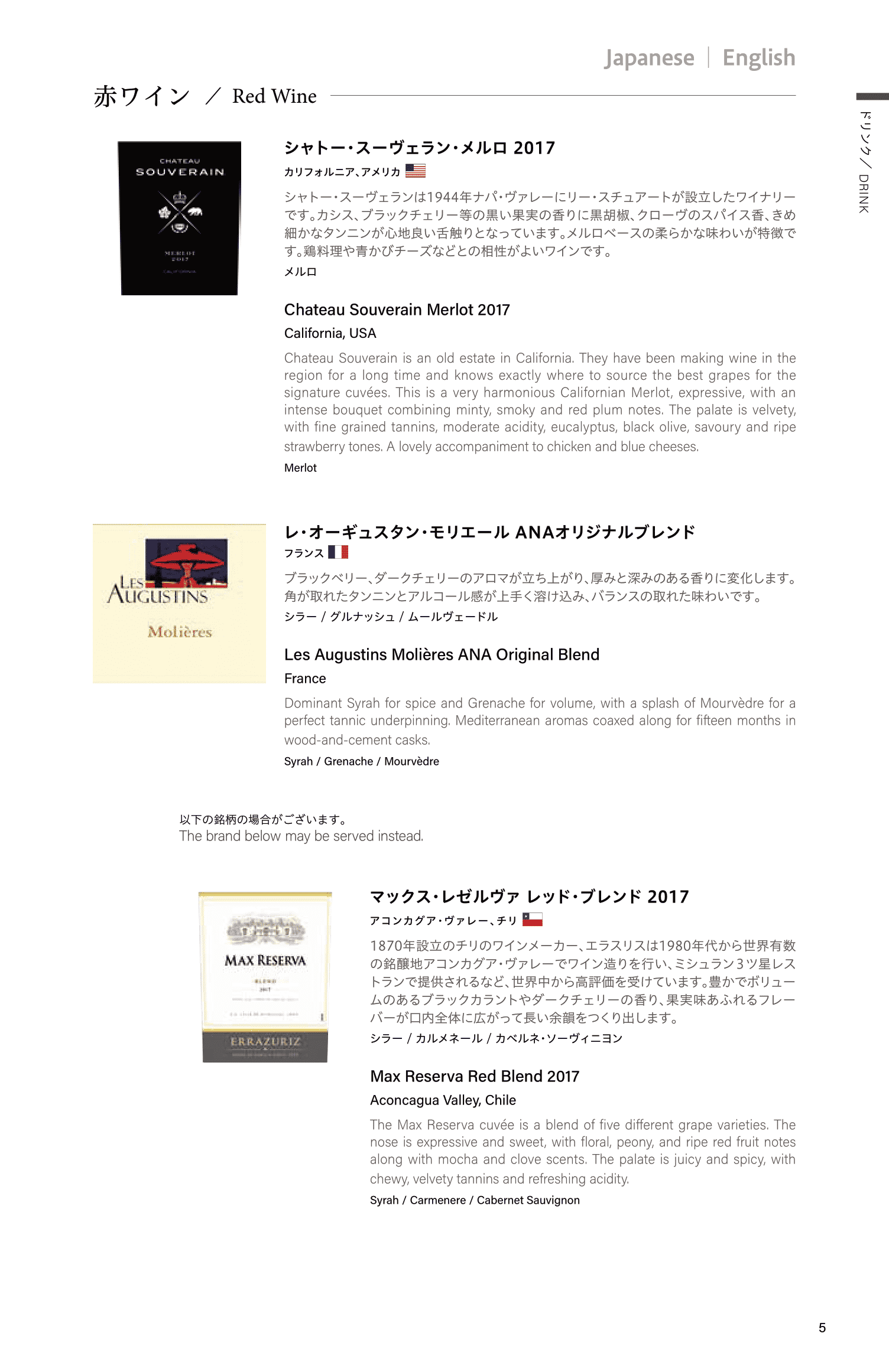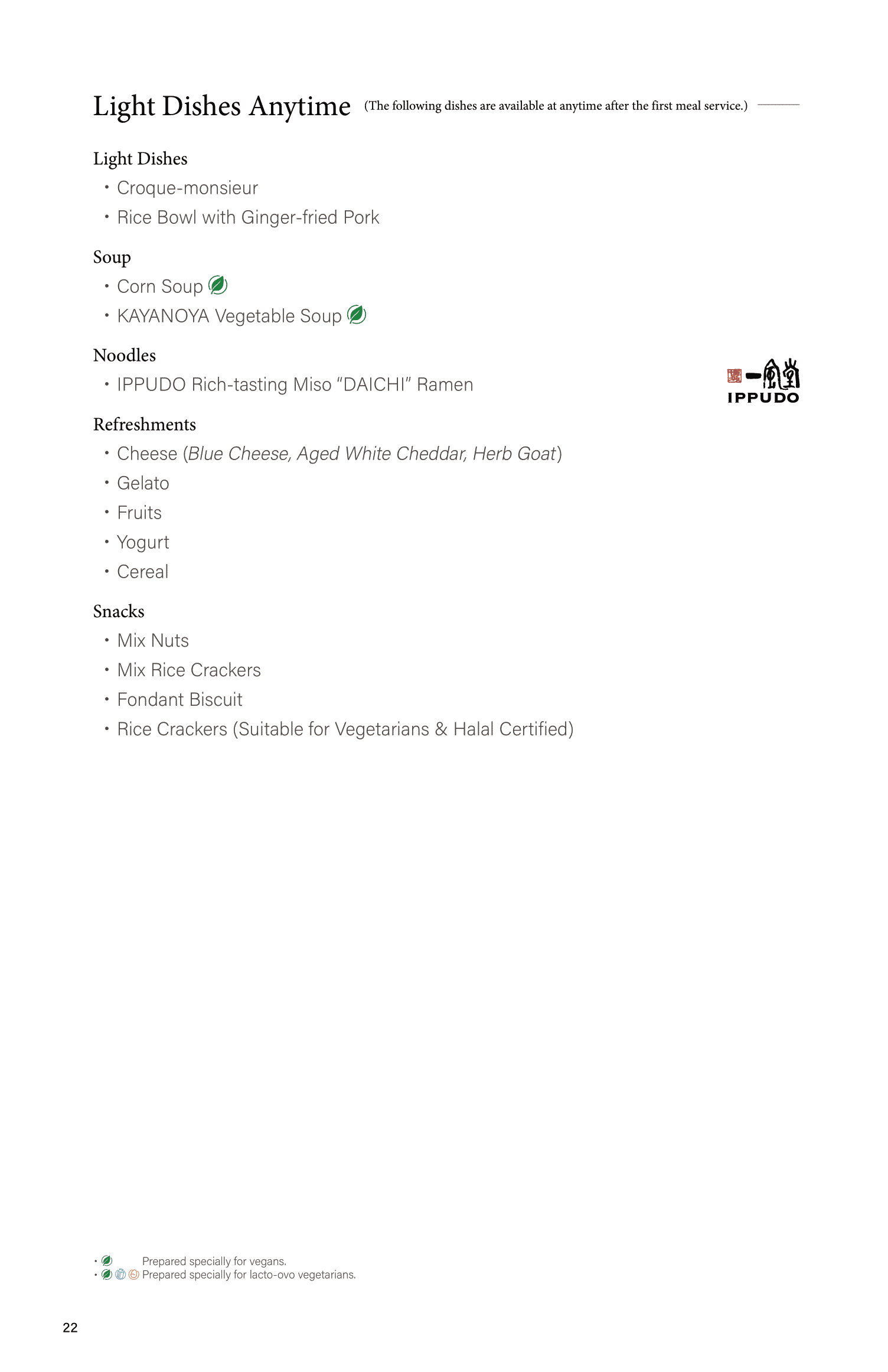The food and drink selection read as follows: