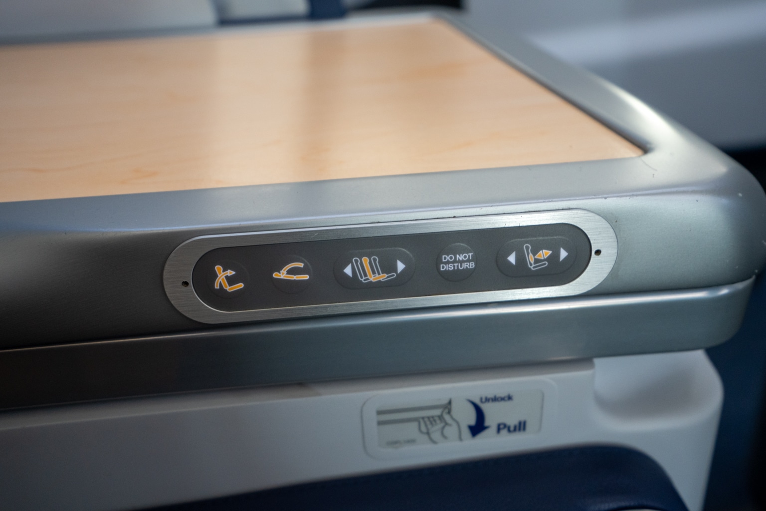 A handful of older-generation seat controls can also be found along the side of the seat console, allowing the seat to be adjusted to your preference or placed in lie-flat mode.