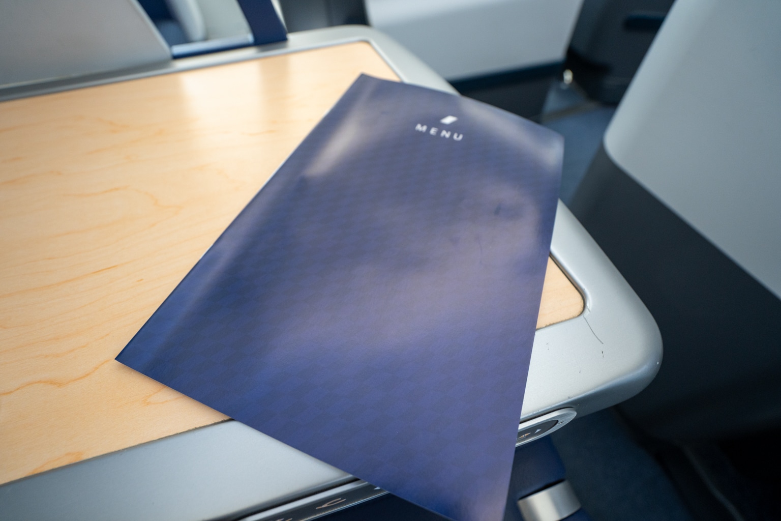 Shortly after takeoff, the crew came around to distribute the in-flight menus. ANA’s business class menu comes with a deep-blue cover, mirroring the design touches of the cabin itself.